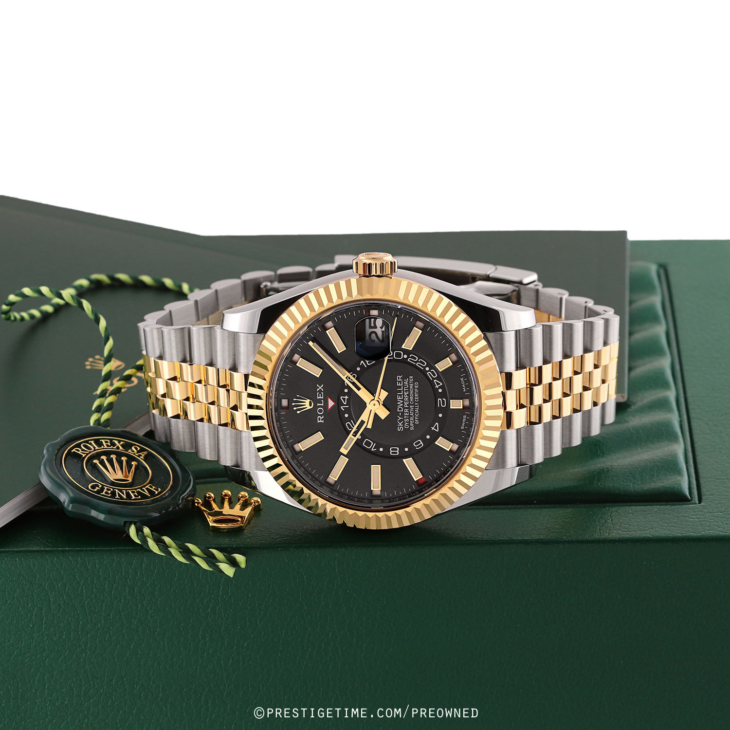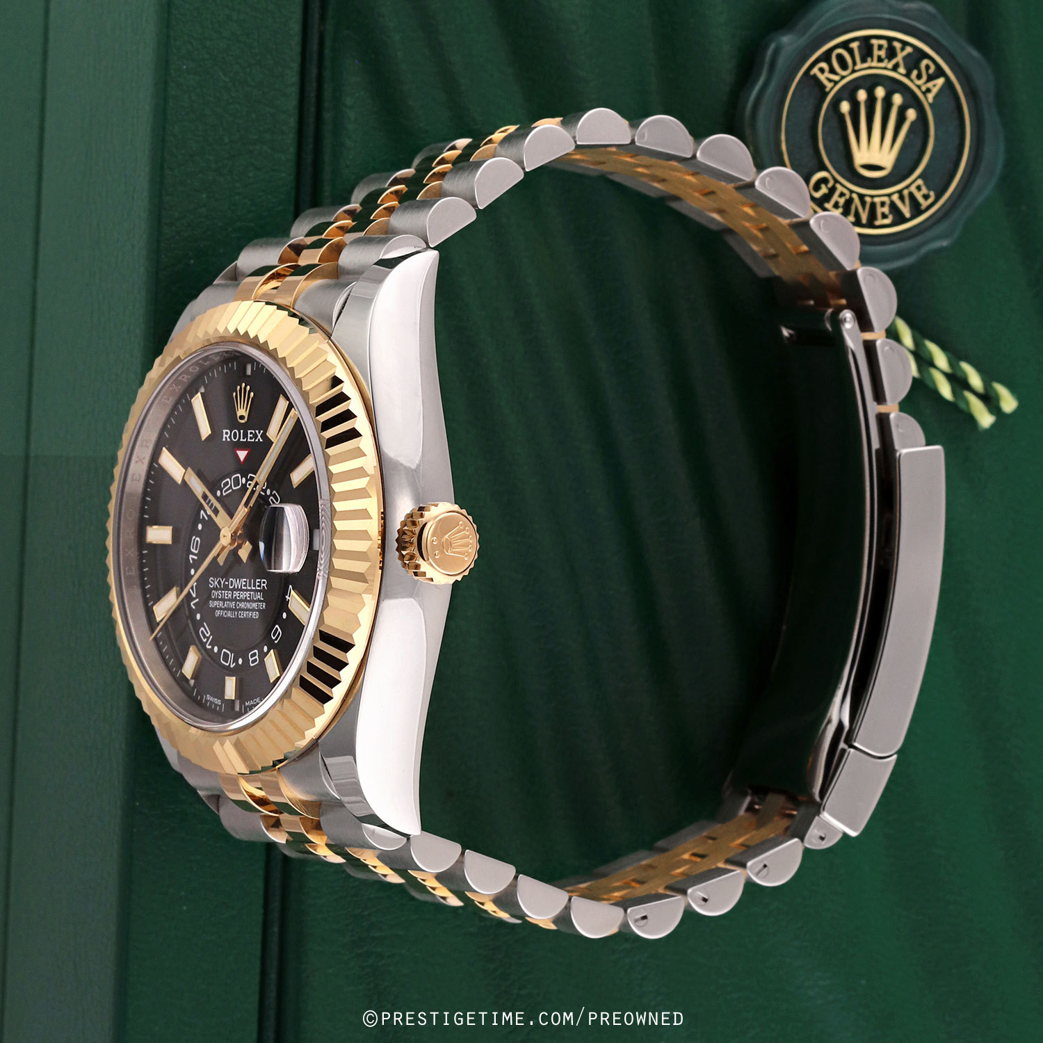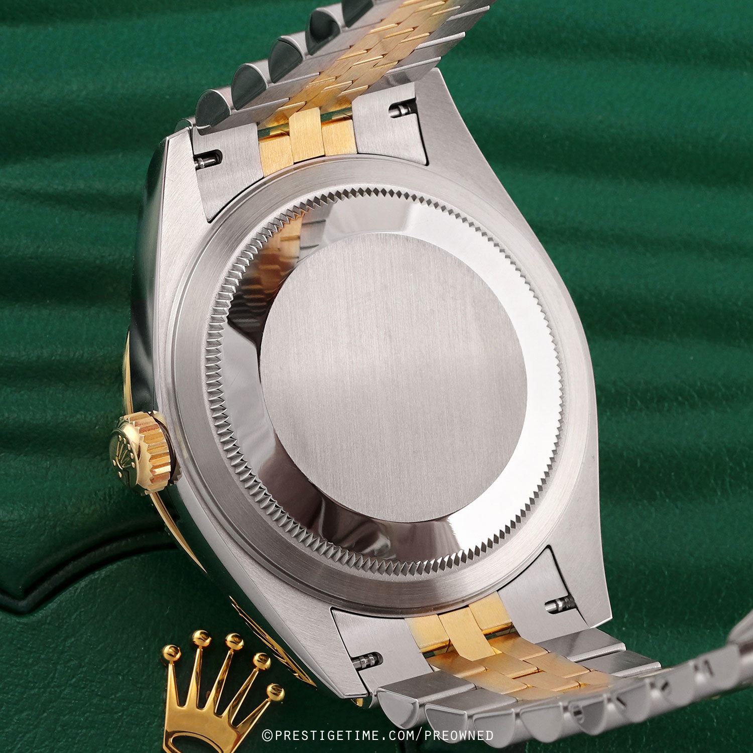 Bracelet: Fitted on a stainless steel & 18kt yellow gold Jubilee style bracelet with a folding Oysterclasp. The buckle features a Easylink 5mm comfort extension link. The bracelet has all links