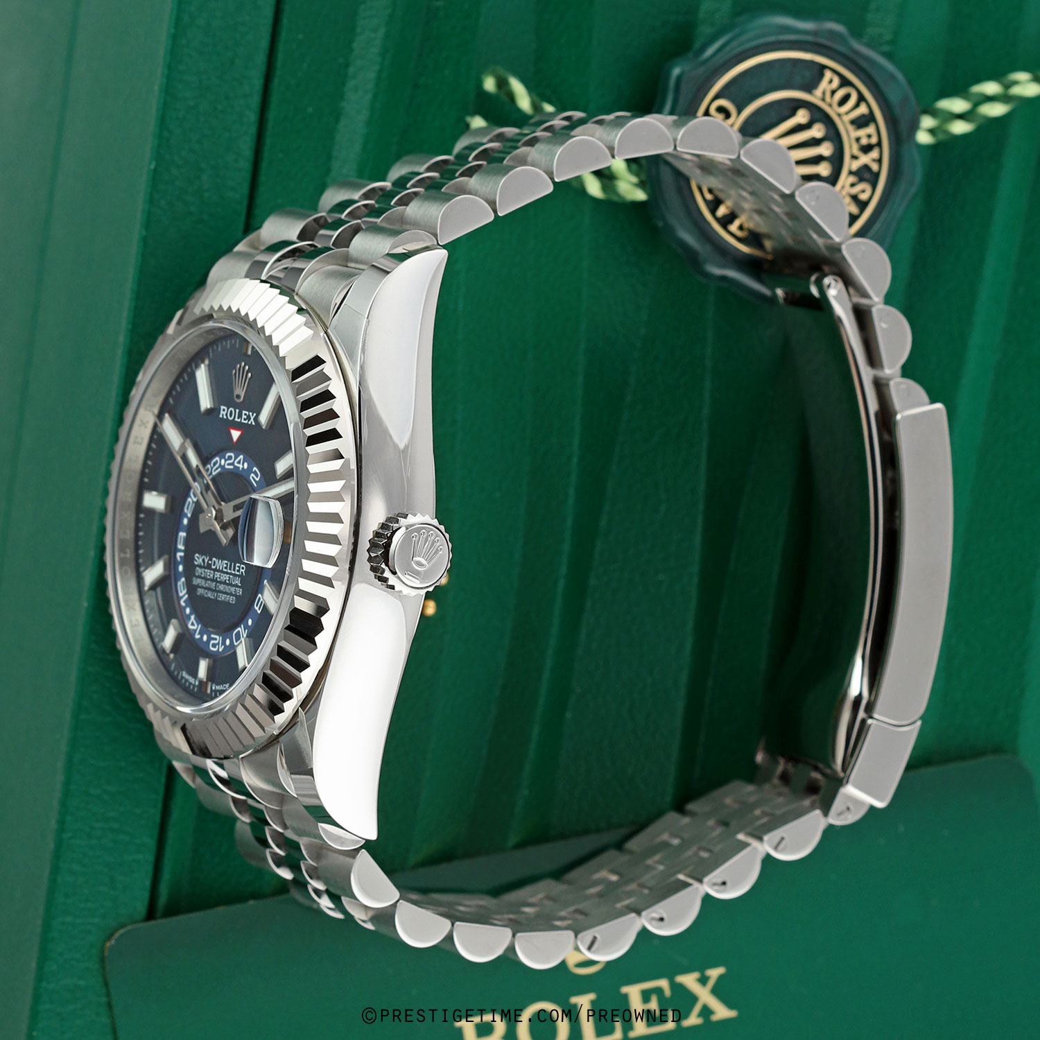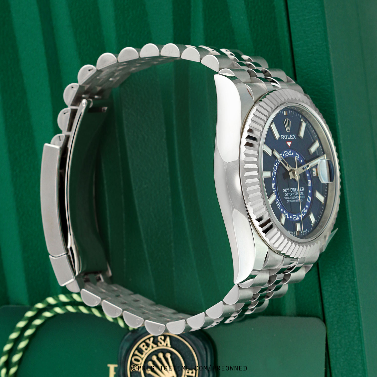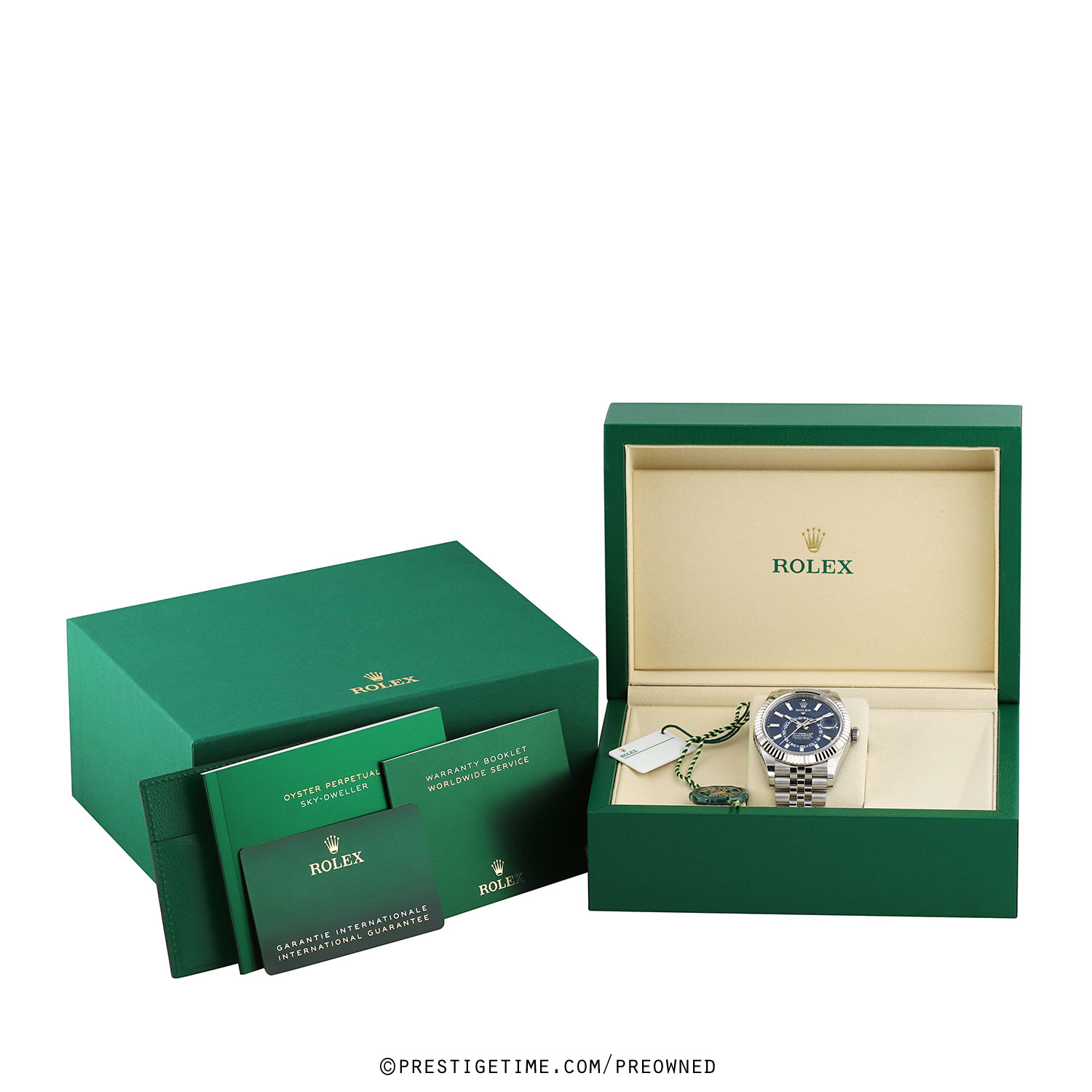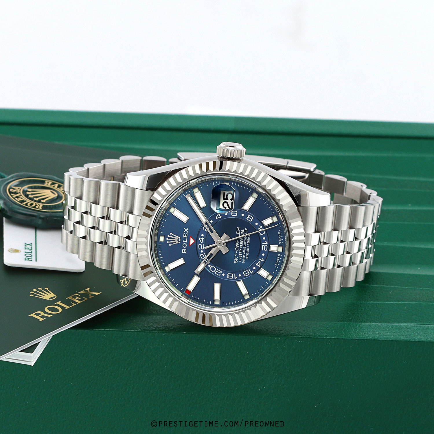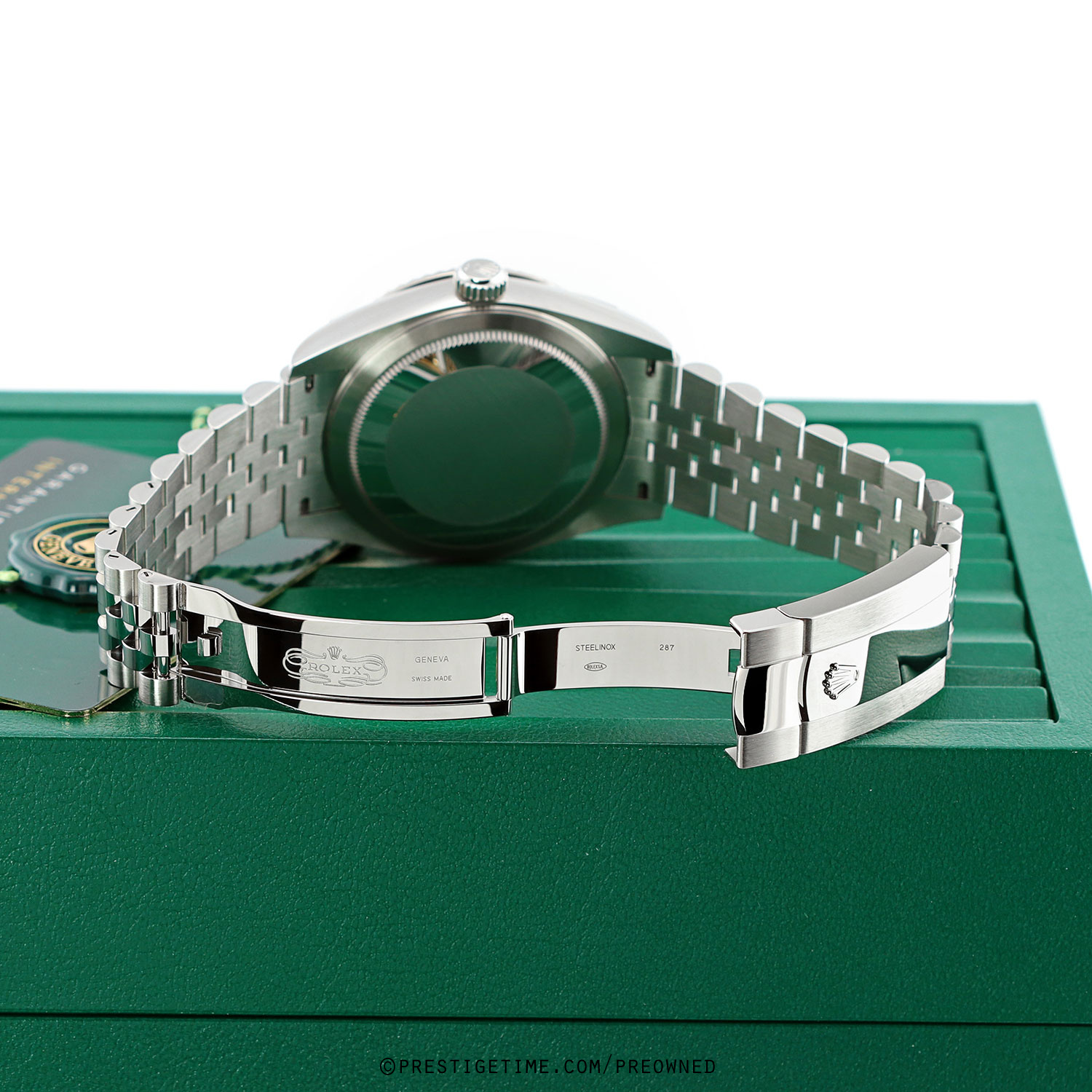 Condition: This watch is in excellent near new condition. Worn carefully by its original owner, we have had the watch lightly spot buffed to remove whatever light signs of wear were present. We would be comfortable rating this watch in an 98%+ overall condition. Delivered in its original box with all papers (warranty card dated 09/2025) and with both the green Rolex hologram and white serialized hang tags.
