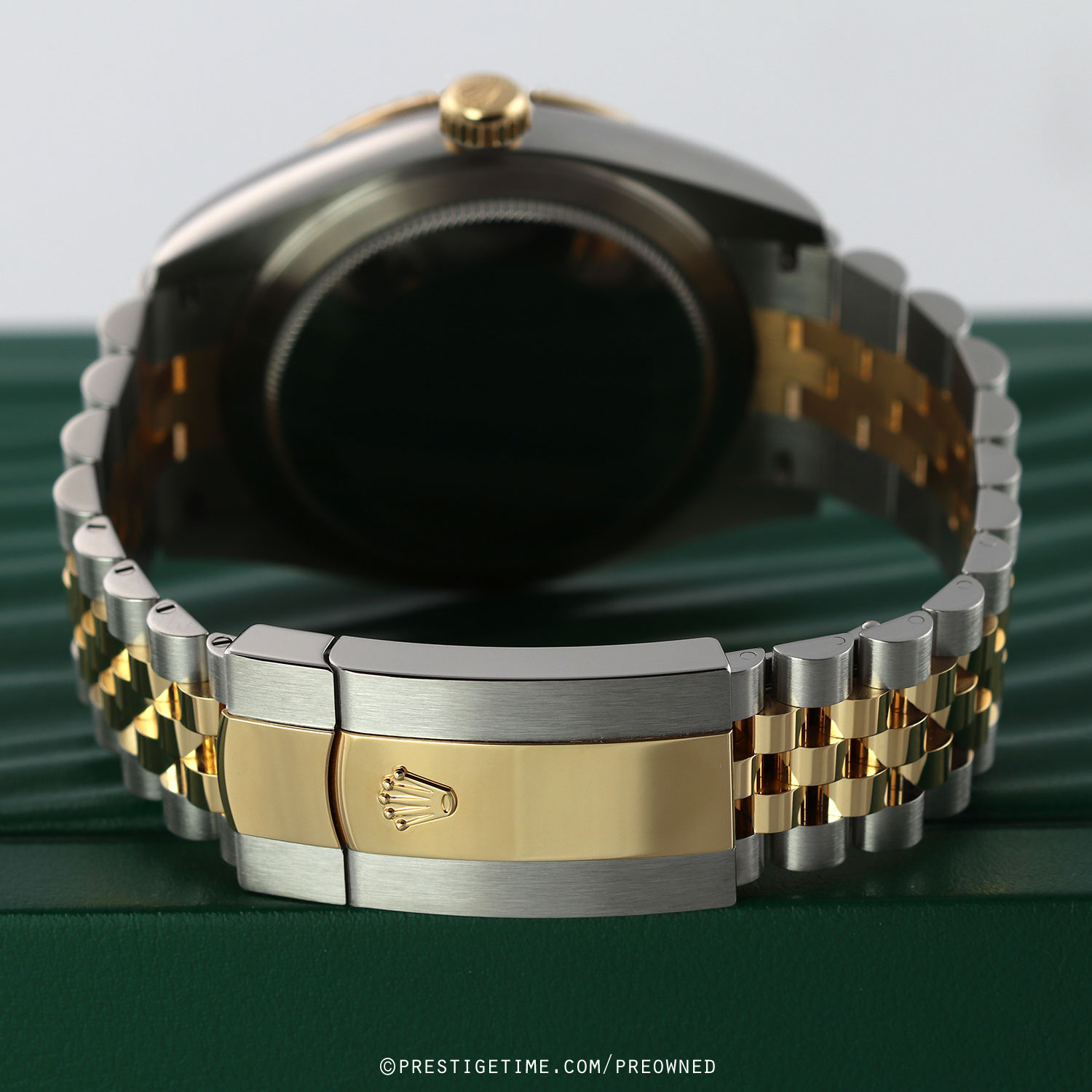 Bracelet: Fitted on its original brushed & polished stainless steel & 18kt yellow gold Jubilee style bracelet with an Oysterlock folding clasp. The clasp features Rolex's patented Easylink 5mm extension link. The bracelet is fully linked & will fit up to a 7-7/8" wrist.