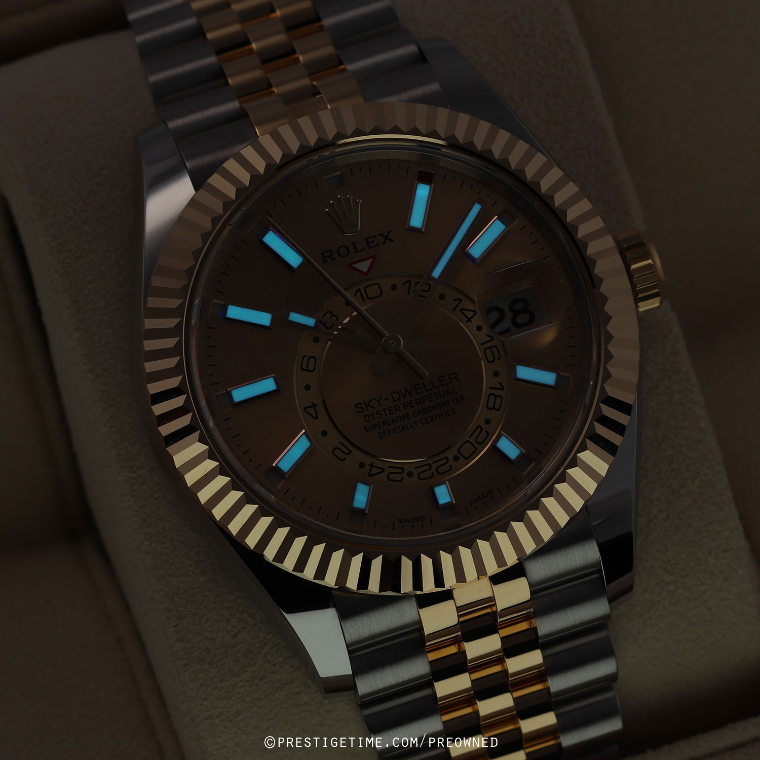 Movement: Powered by a Rolex in-house calibre 9001 which beats at 28,800 vph, contains 40 jewels & has an approximate power reserve of 72 hours. The movement features a Paramagnetic blue Parachrom hairspring & high performance Paraflex shock absorbers. The watch boasts a total of 14 patents, seven of which are on the movement.