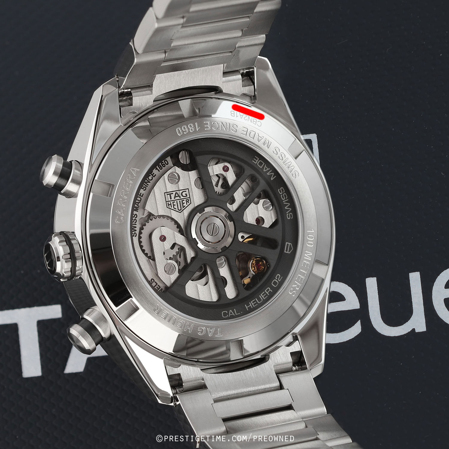 - Column-wheel mechanism, the column wheel is visible via case back.