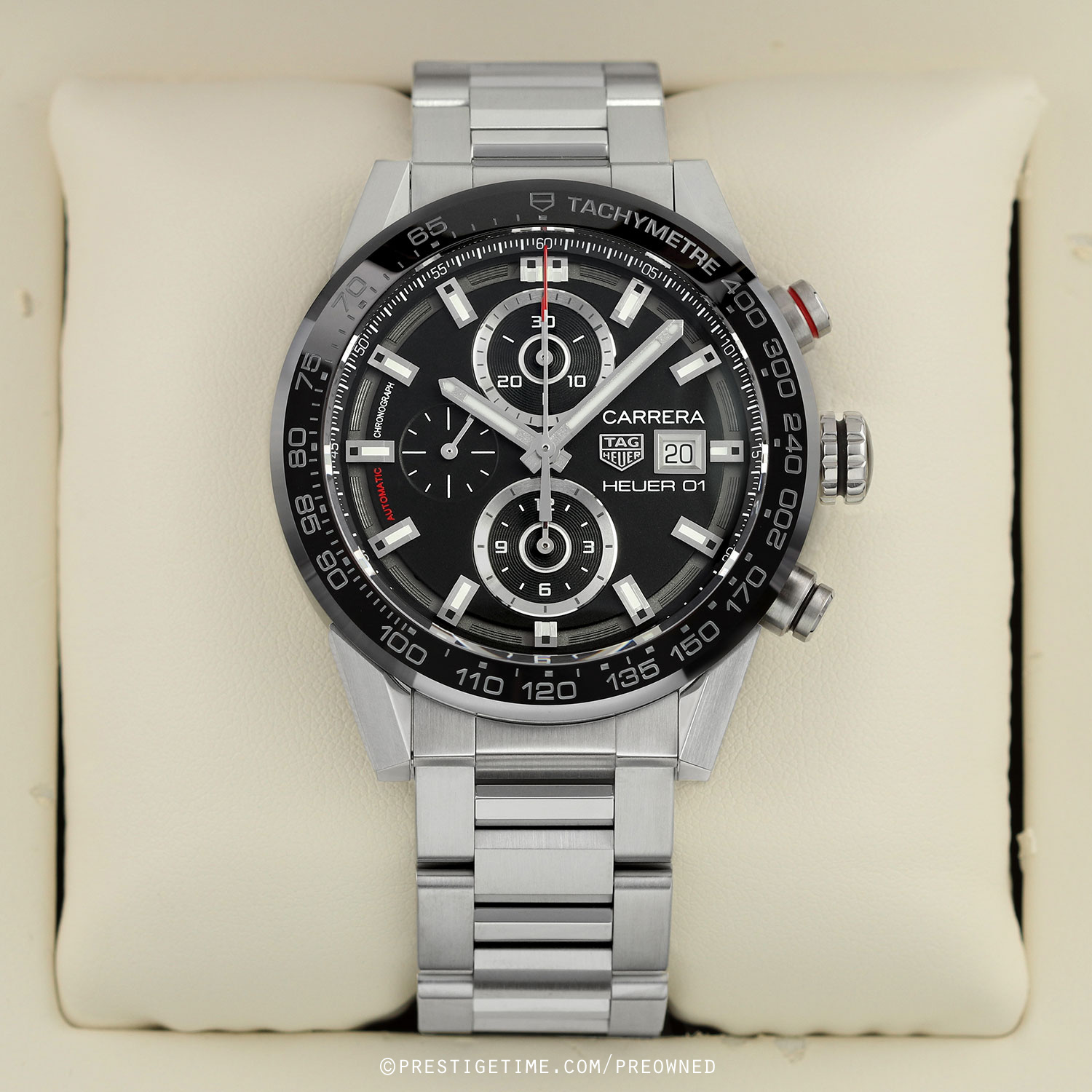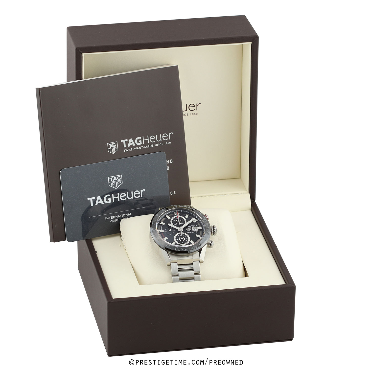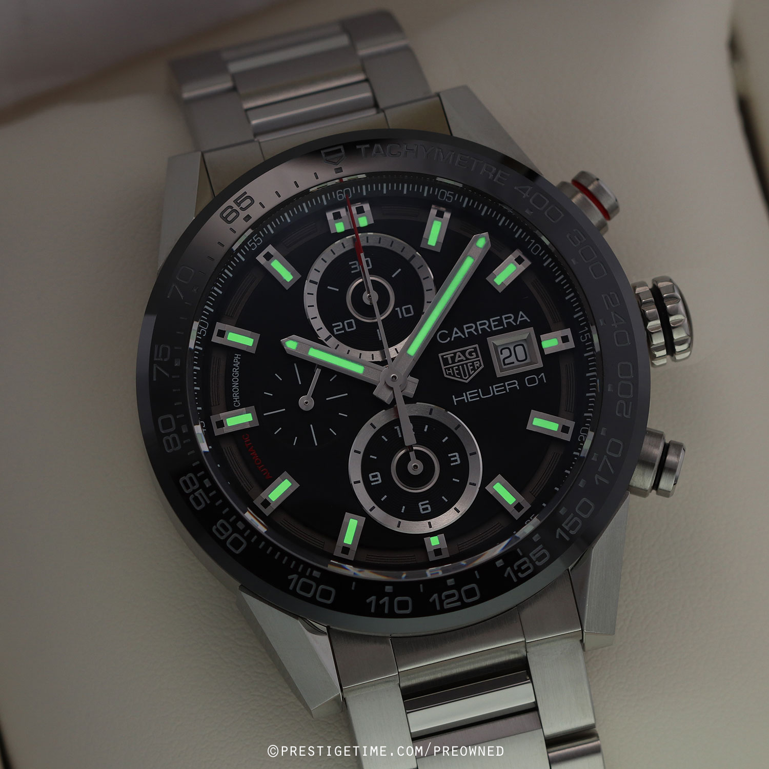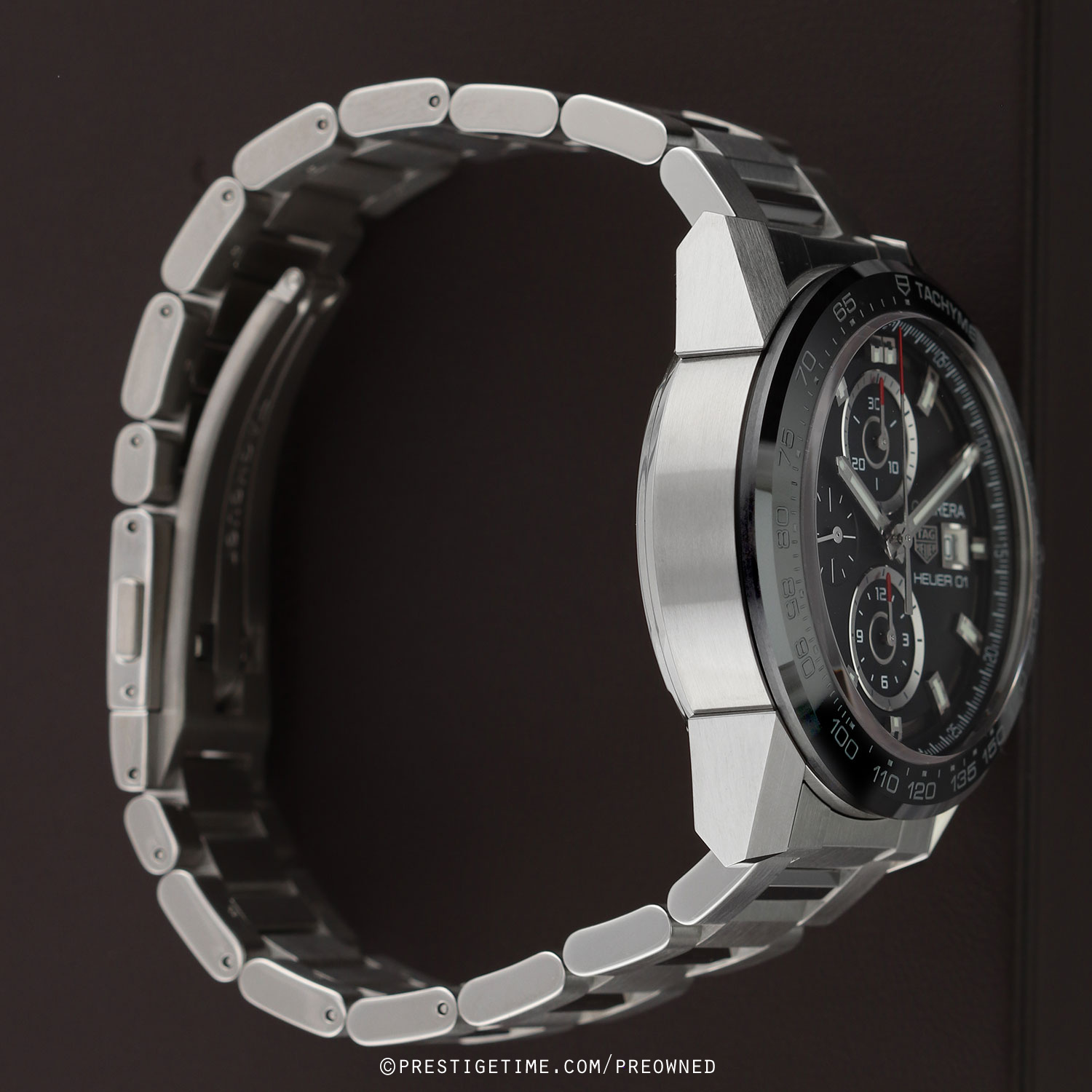 Movement: Powered by a TAG Heuer caliber 01, beats at 28,800 vph (4Hz), contains 39 jewels & has a power reserve of +/-50 hours if just the watch is running or +/- 40 hour if the chronograph function is running.