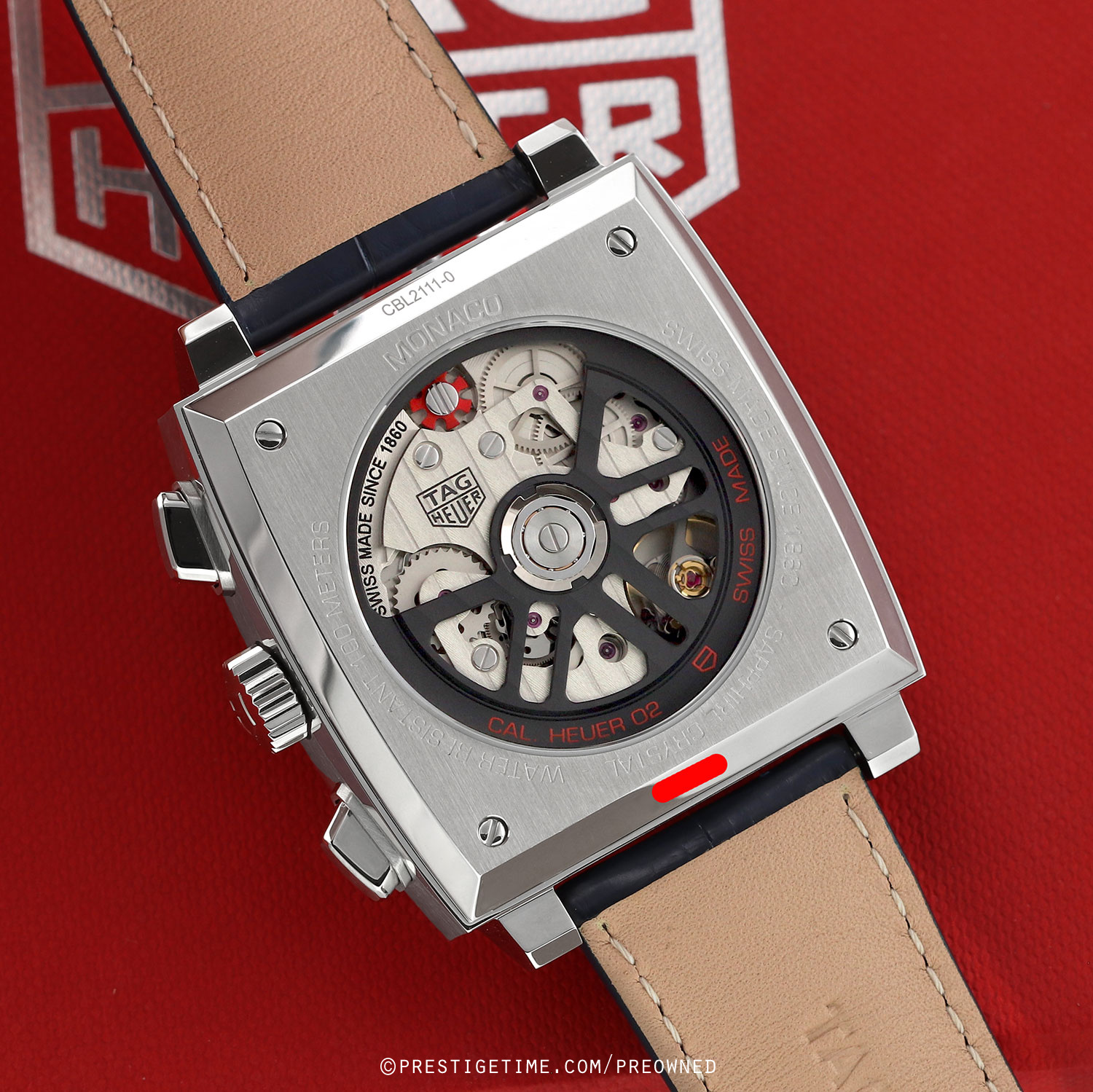 Movement: Powered by an in-house Tag Heuer calibre HEUER 02, beats at 28,800 vph (4Hz), contains 33 jewels & has a power reserve of +/- 80 hours (or +/- 65 hours if the chronograph function is running).