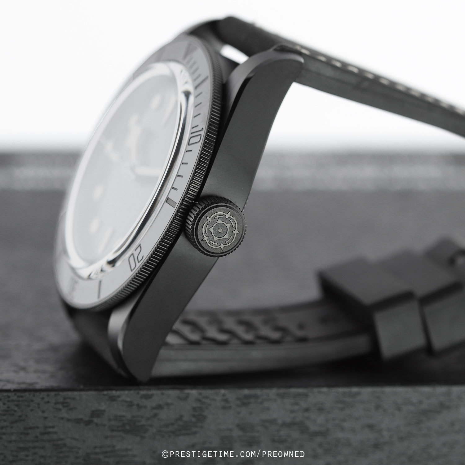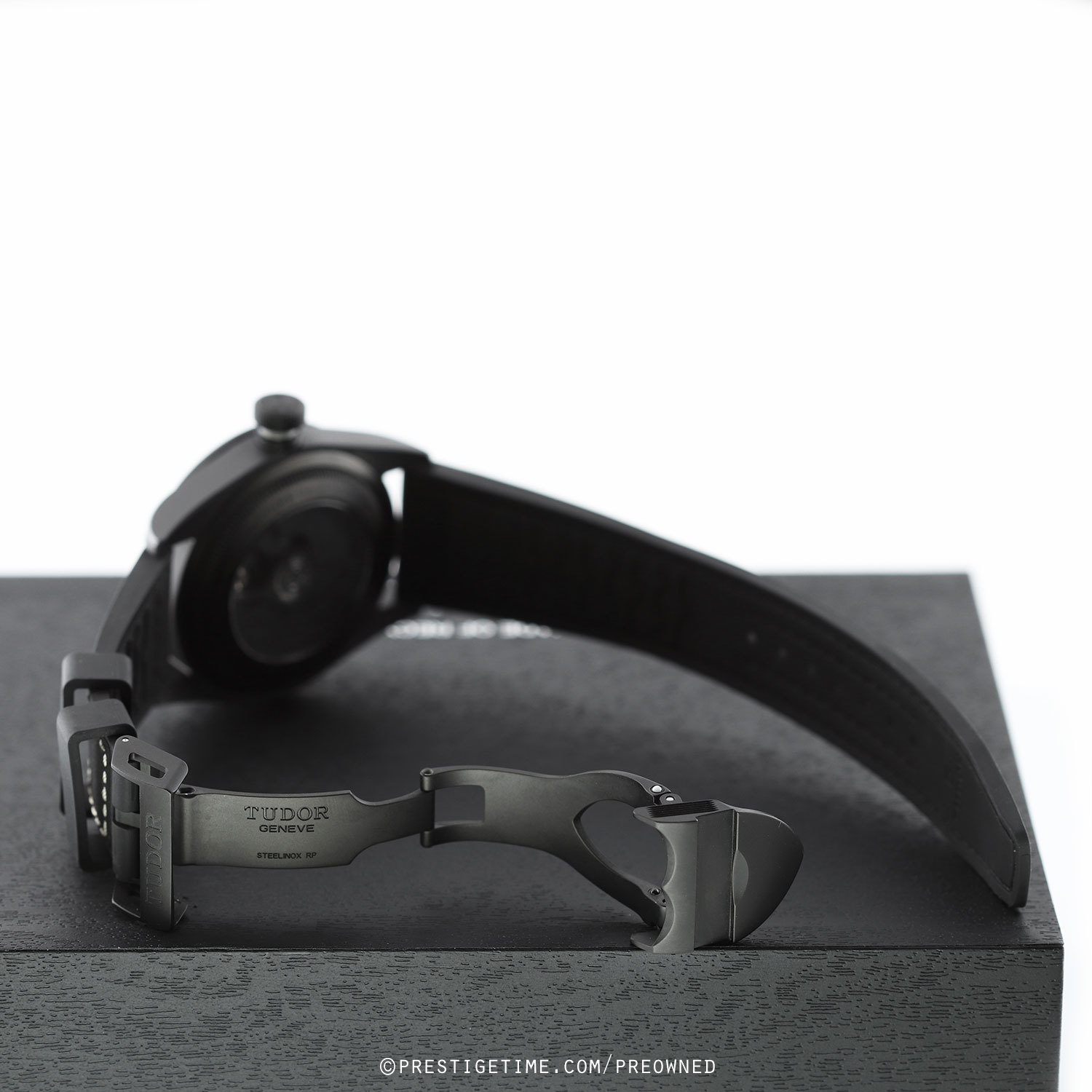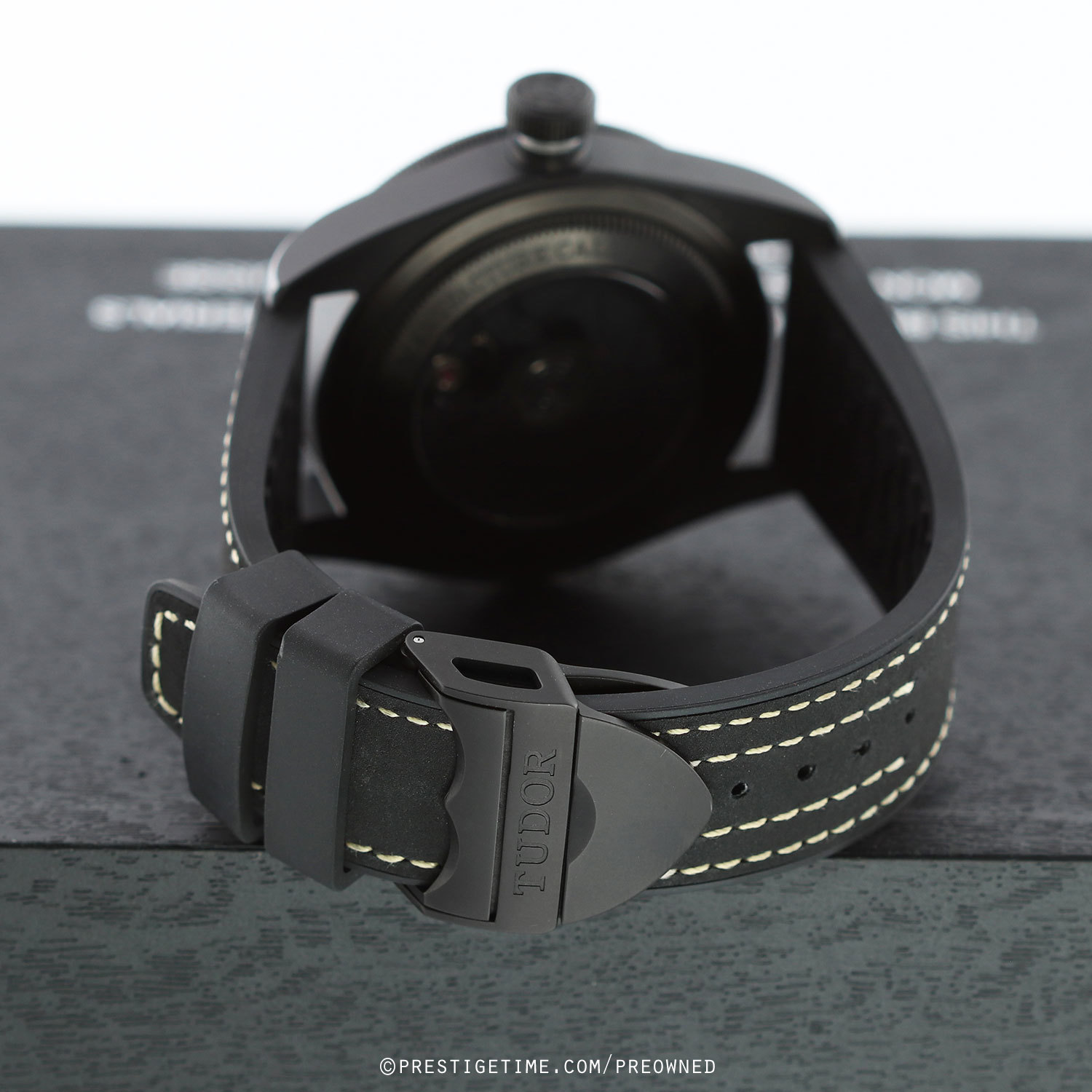 - Fitted with its original Tudor black calfskin leather with black rubber lining strap and with a matte black PVD coated stainless steel deployant buckle. The strap is excellent new brand new condition, worn a handful of times at most with its full wear lifespan remaining. We would be comfortable rating this strap in 99% overall condition.
