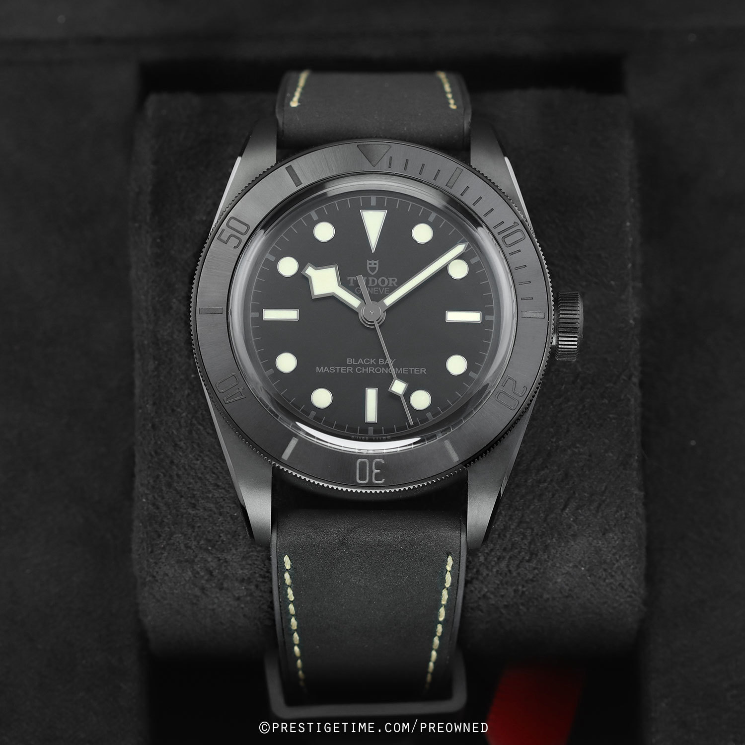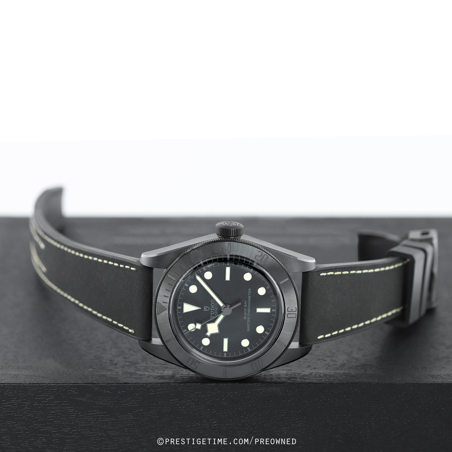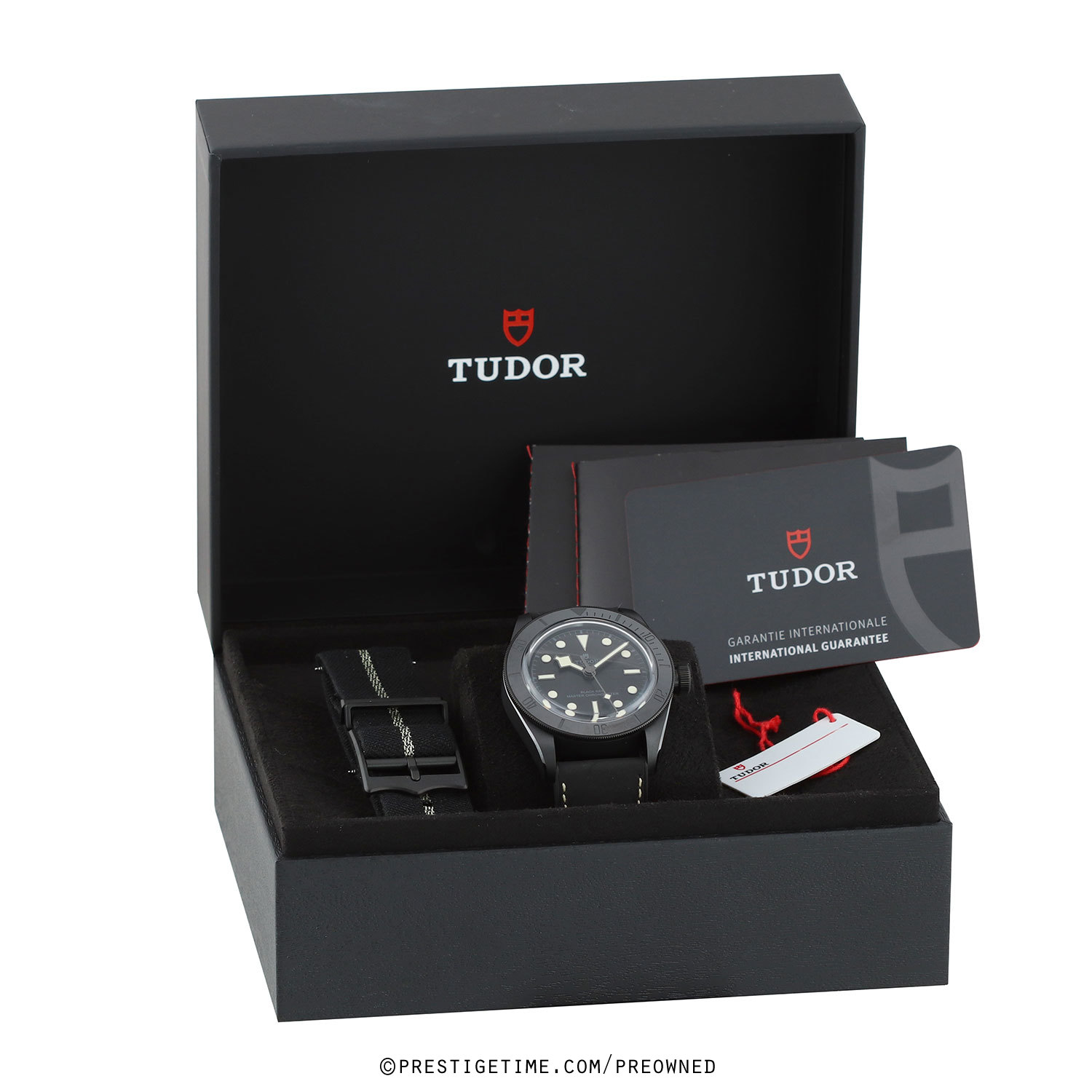 - Fitted with its original Tudor black calfskin leather with black rubber lining strap and with a matte black PVD coated stainless steel deployant buckle. The strap is excellent new brand new condition, worn a handful of times at most with its full wear lifespan remaining. We would be comfortable rating this strap in 99% overall condition.