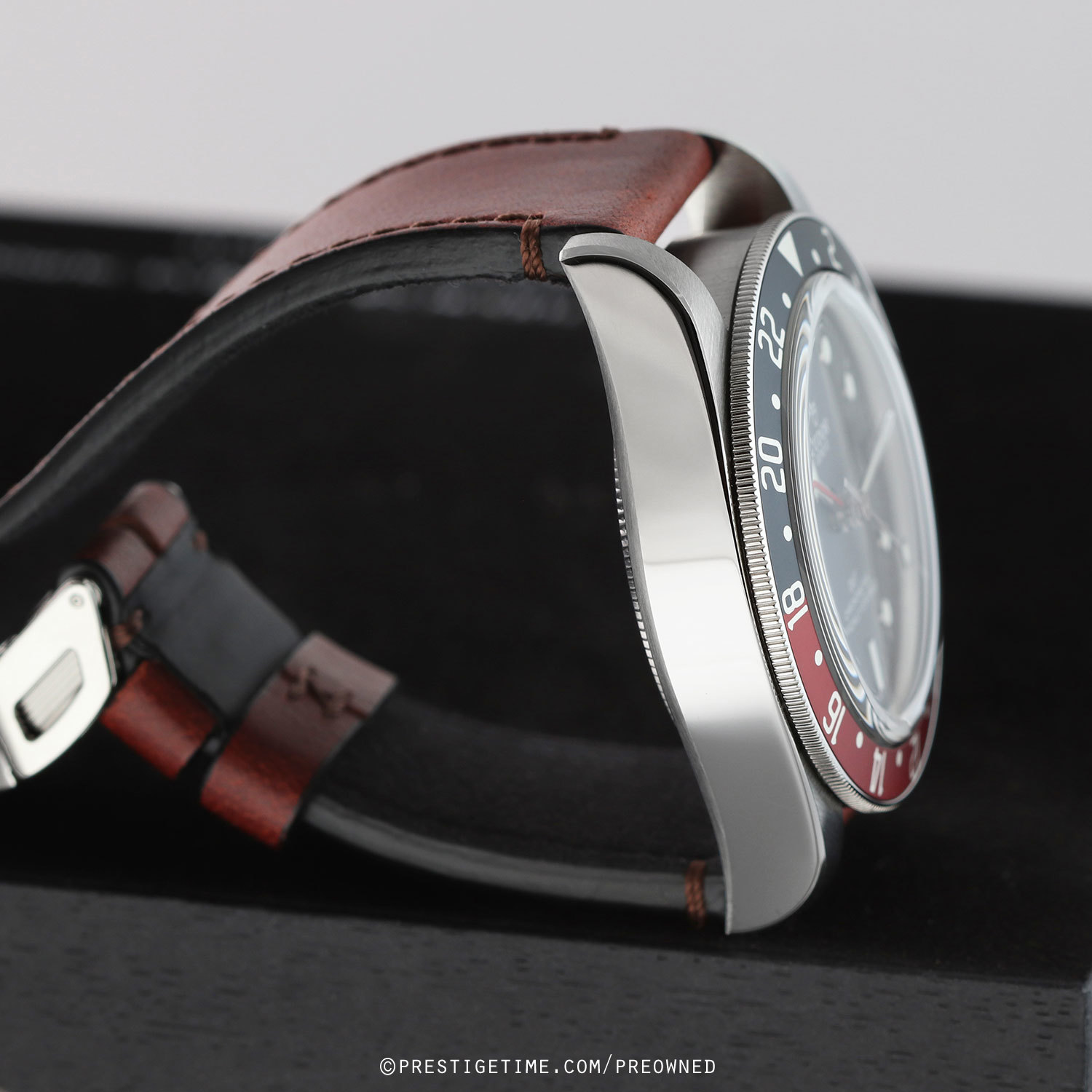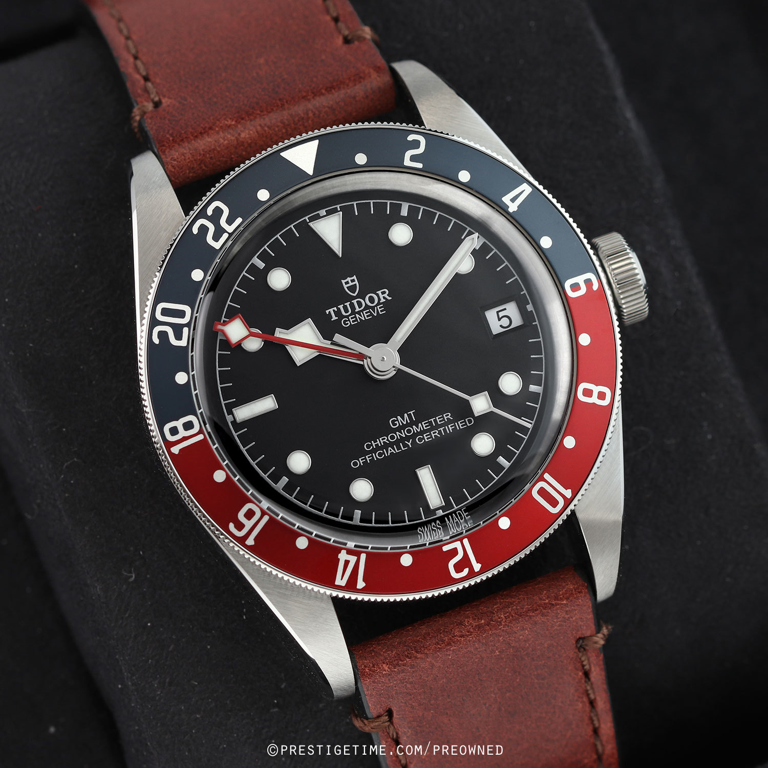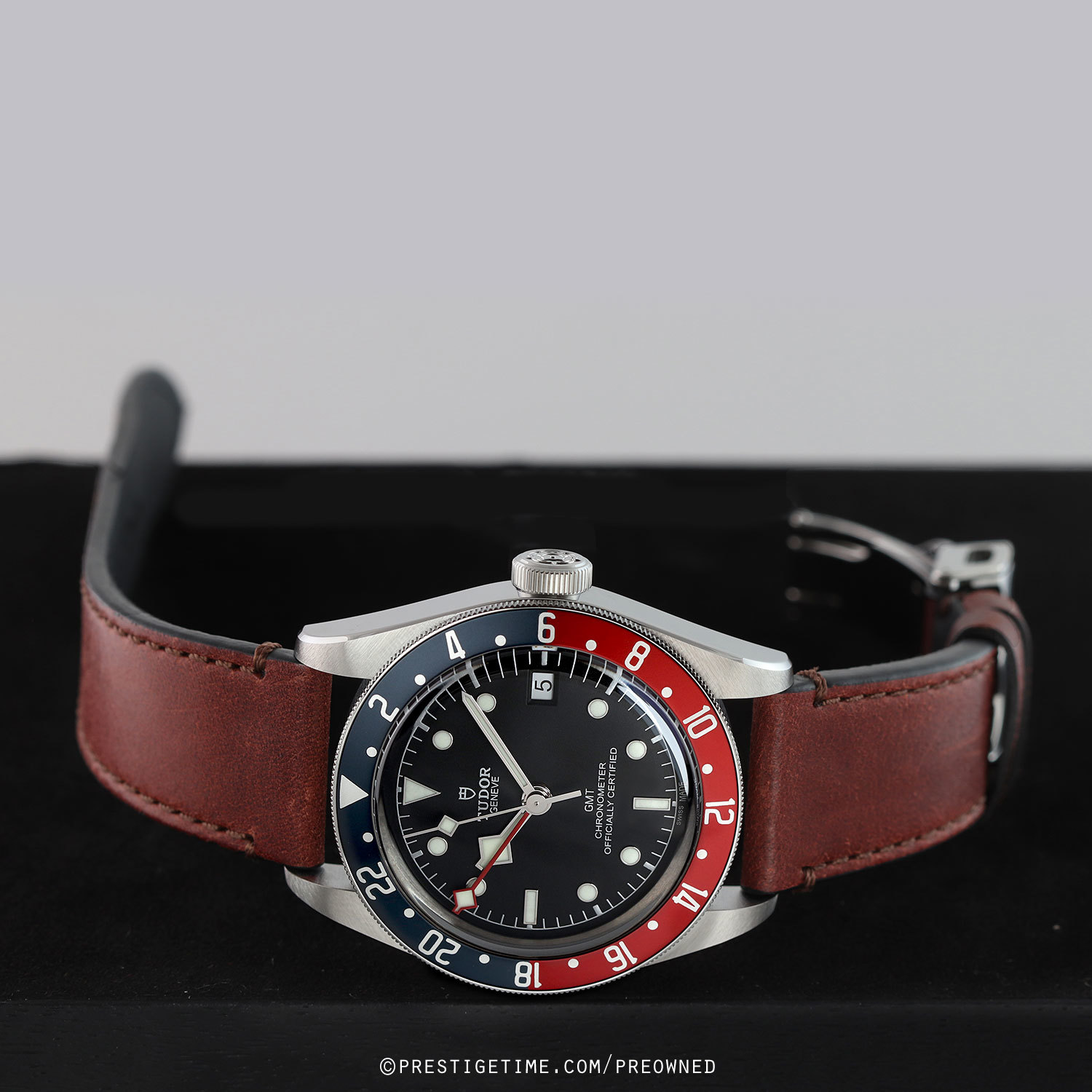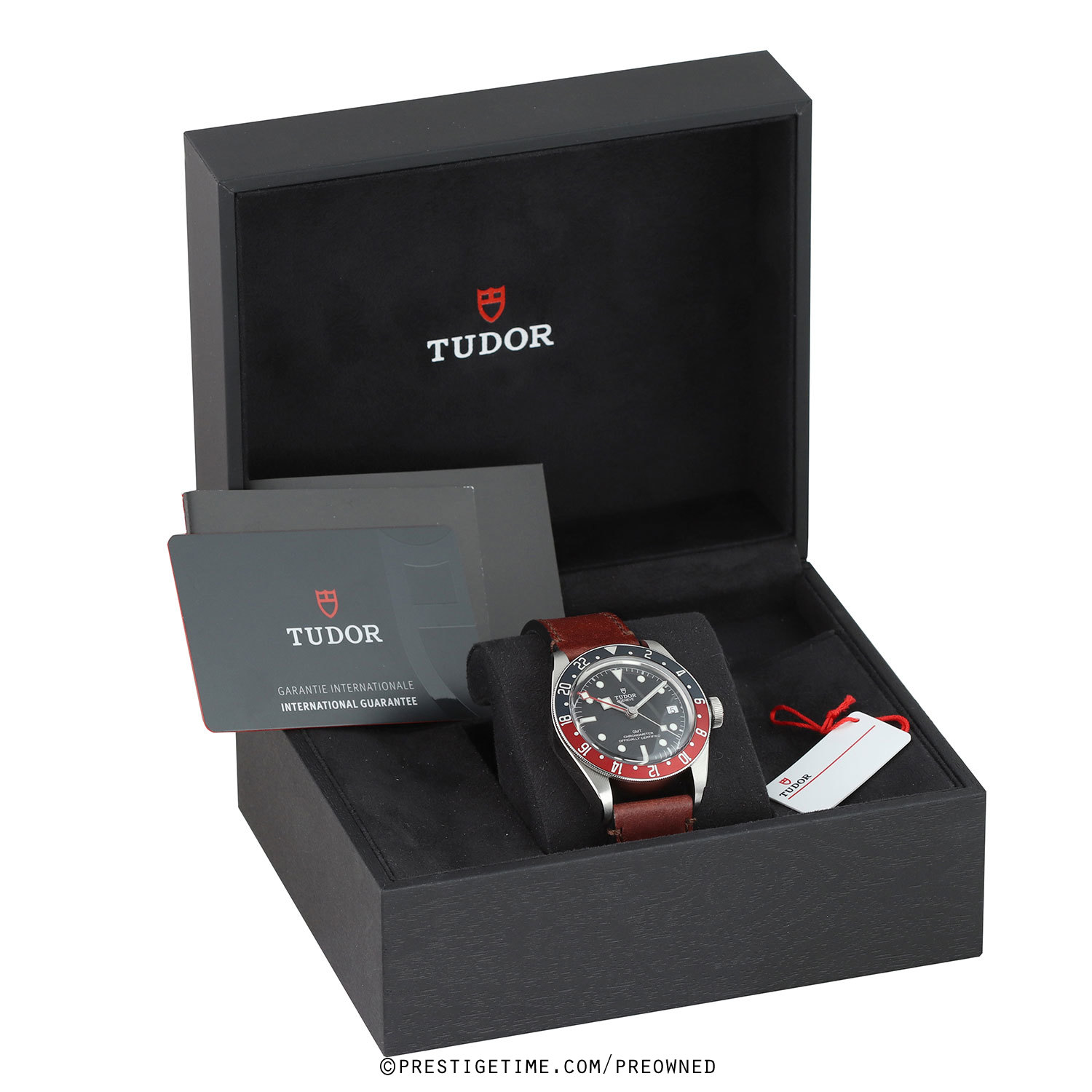 Case: Brushed & polished stainless steel case. Blue & red 'PEPSI' aluminum bezel ring with 24 hour indications. Crown with the TUDOR rose engraved. Matte black dial. Polished angular 'snowflake' hands with luminous fill. Applied polished hour markers with luminous fill. Fine printed minute/seconds track.