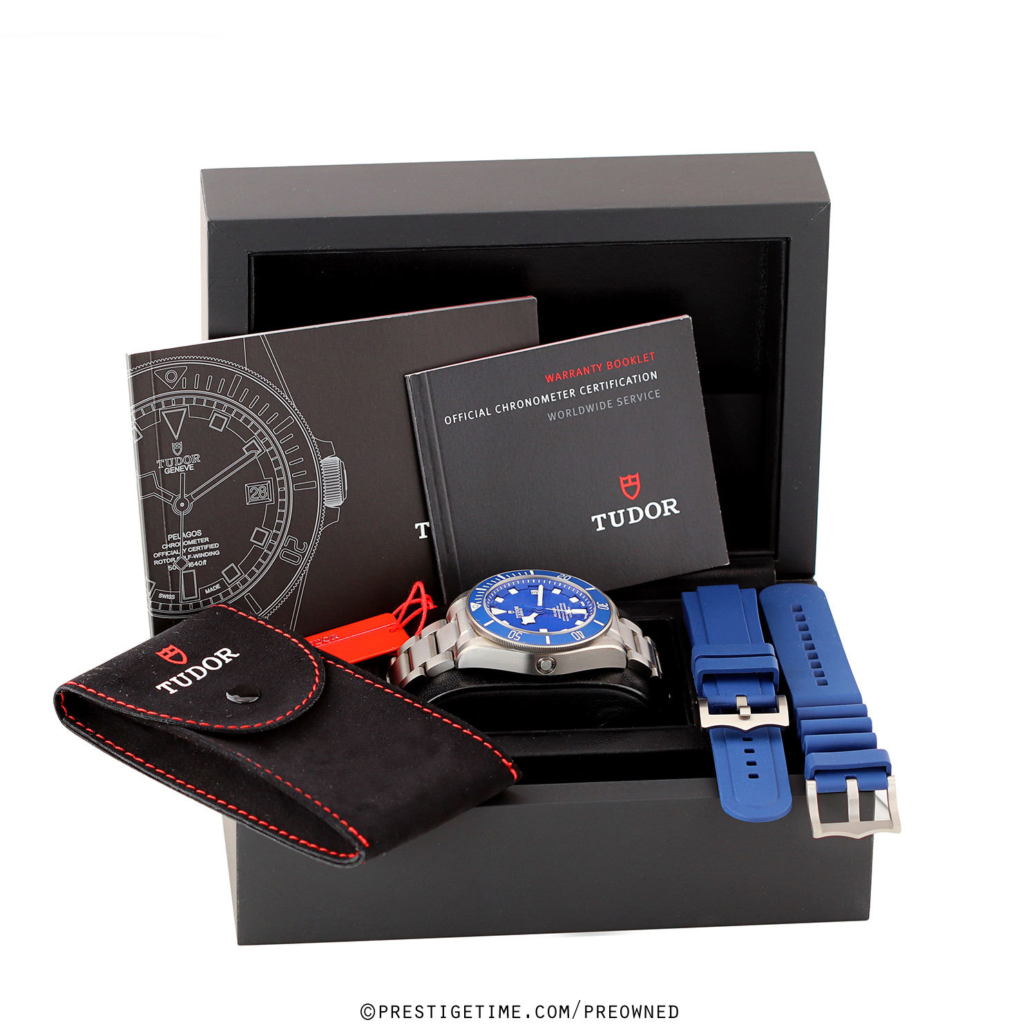 - Delivered with an additional Tudor original blue rubber strap with a tang buckle & a divers extension strap with a tang buckle. The strap is unworn in new condition with its full wear lifespan remaining.