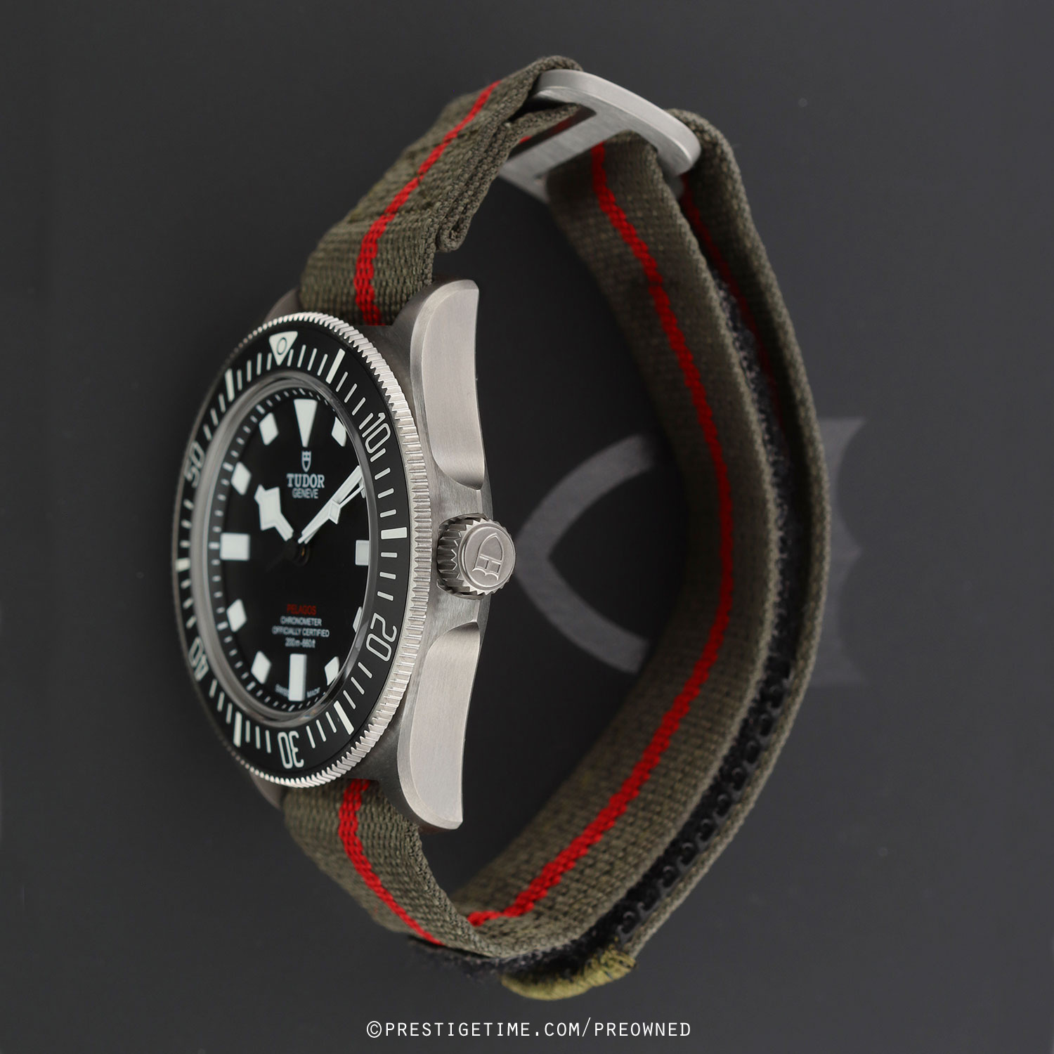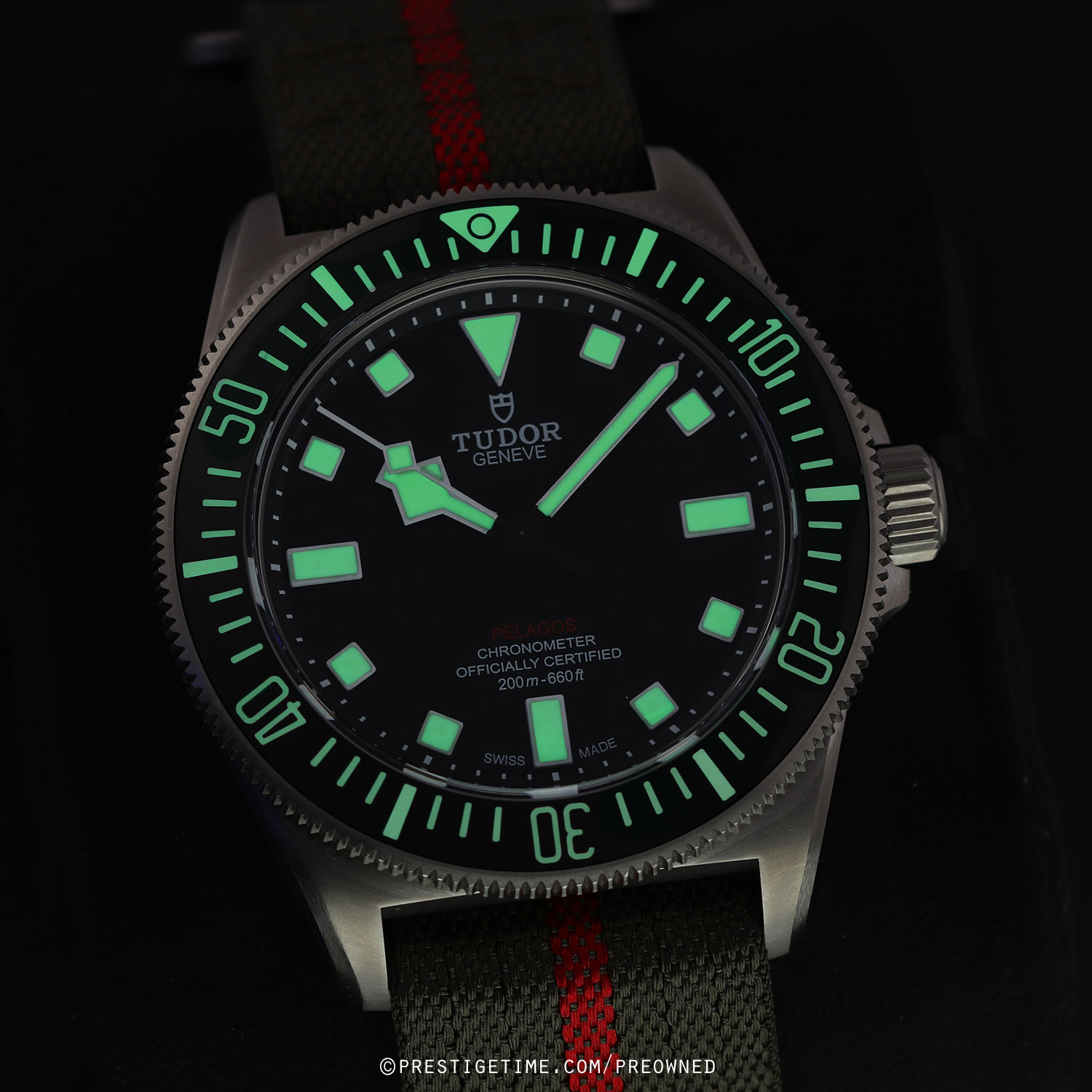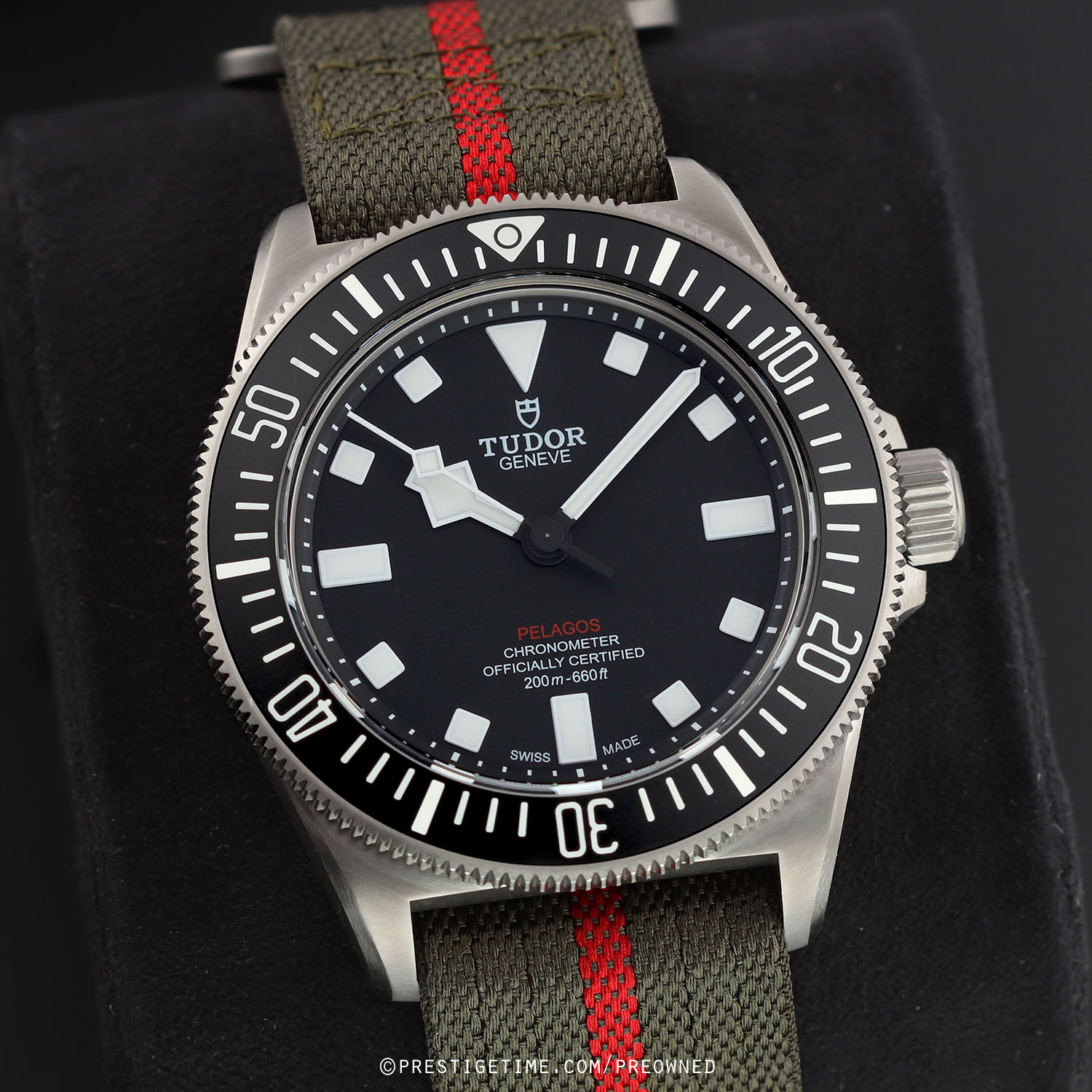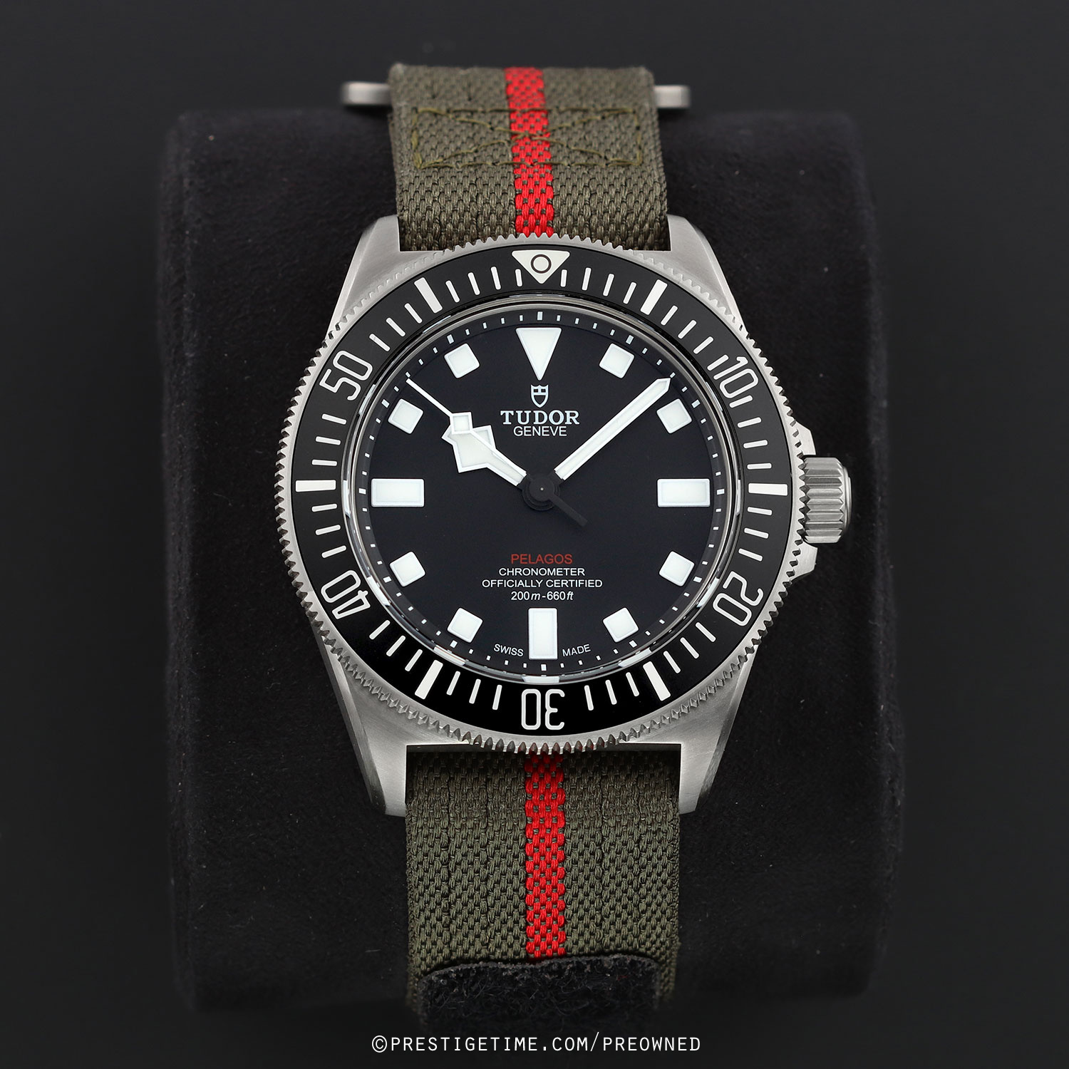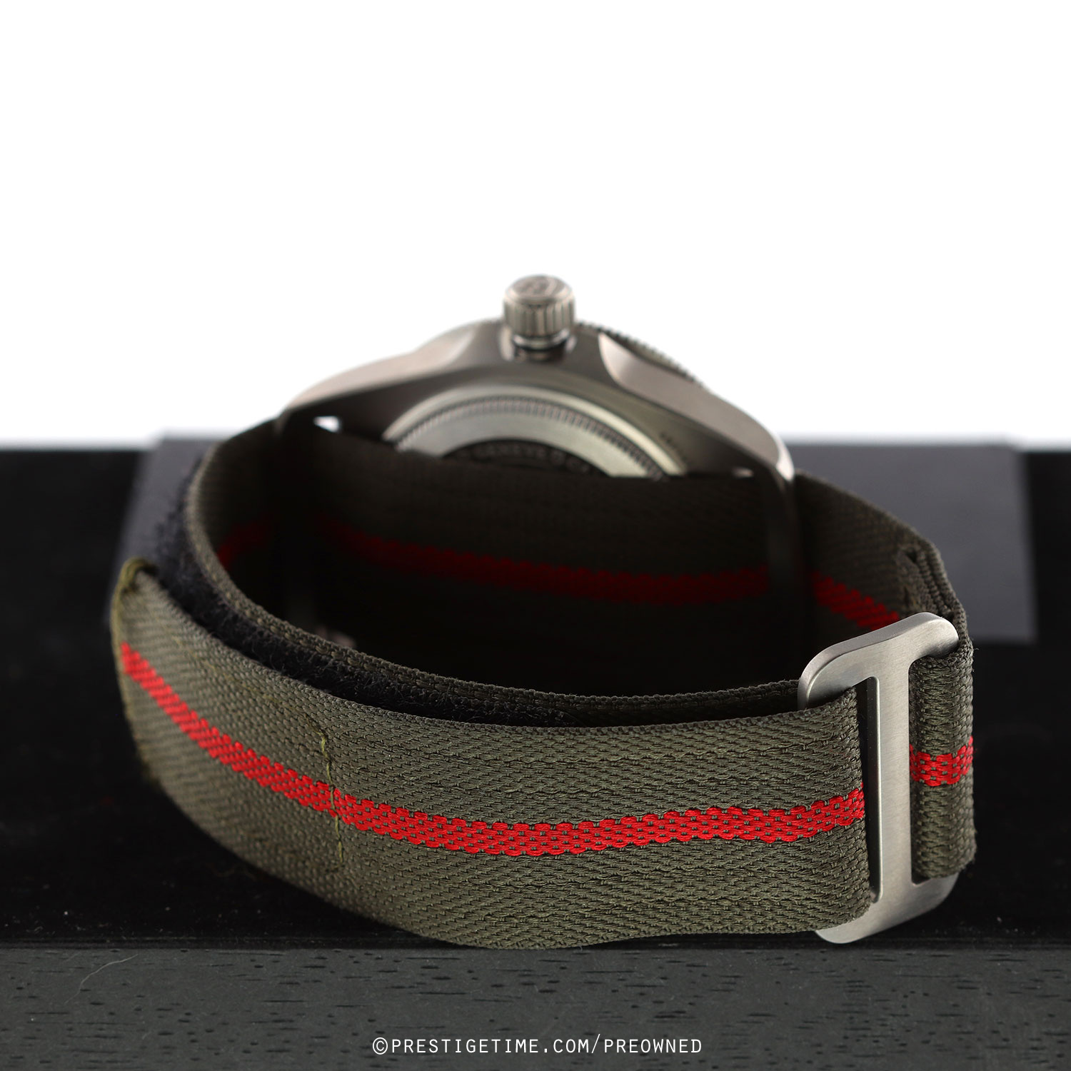 - Fitted on its original forest green fabric strap with a Velcro fastening system. This strap is in excellent, near new condition with the majority of its wear lifespan remaining. We would be comfortable rating the strap as in 96% condition.