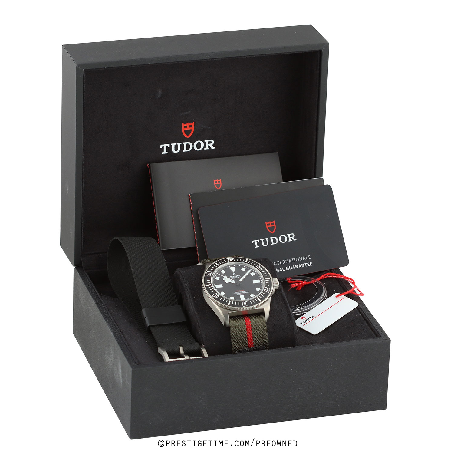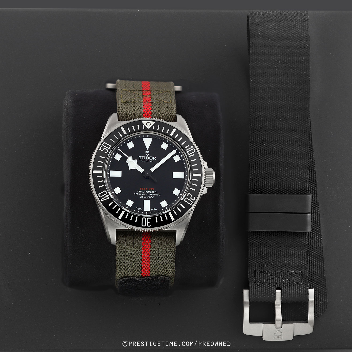 - Delivered with an additional NATO style black rubber strap with a tang buckle. This strap is unworn in new condition with its full wear lifespan remaining.