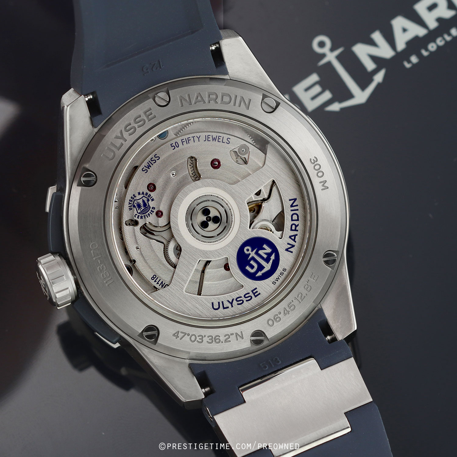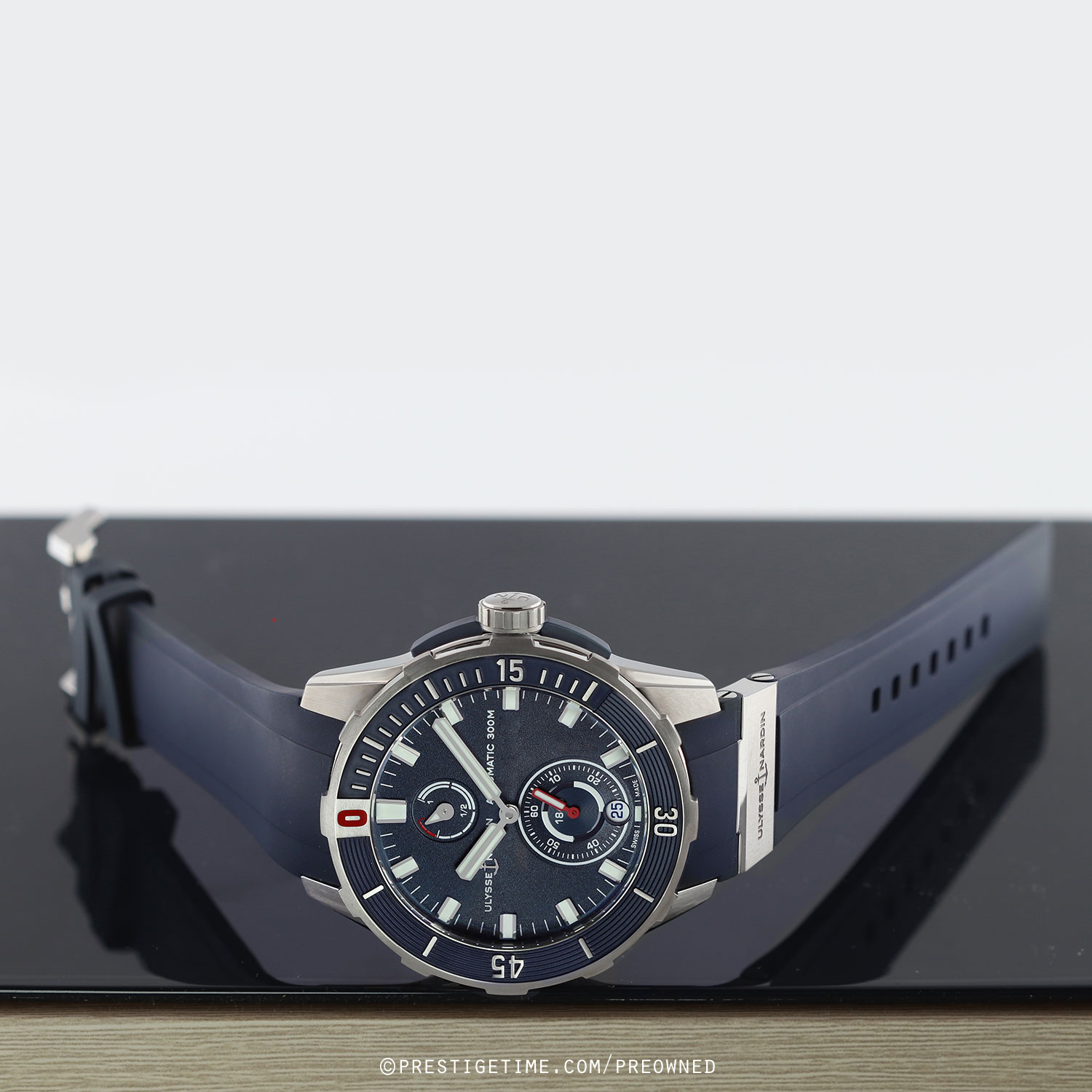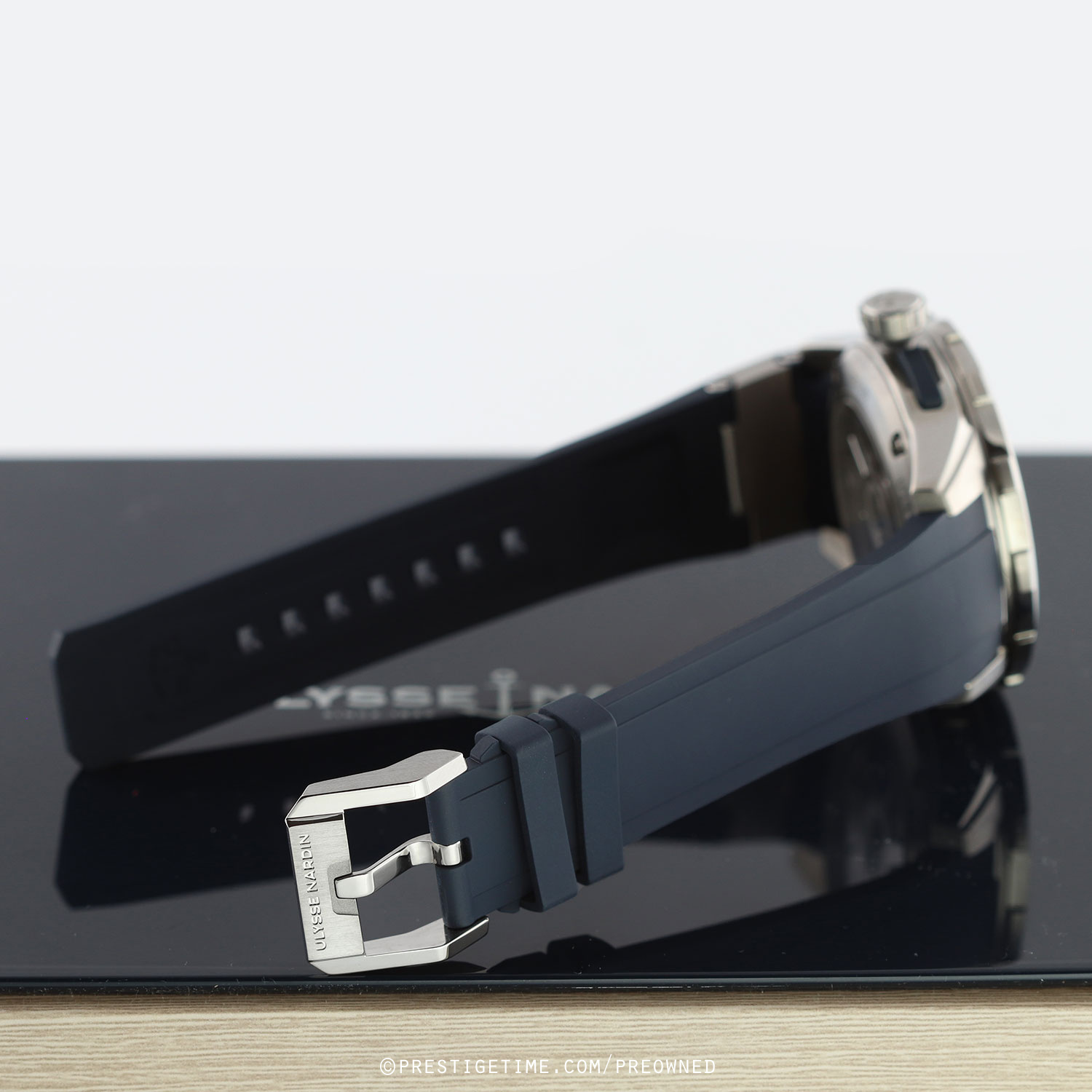 Strap: Fitted on a new Ulysse Nardin original blue rubber strap with a single titanium element & a tang buckle. The strap is unworn, in new condition with its full wear lifespan remaining.