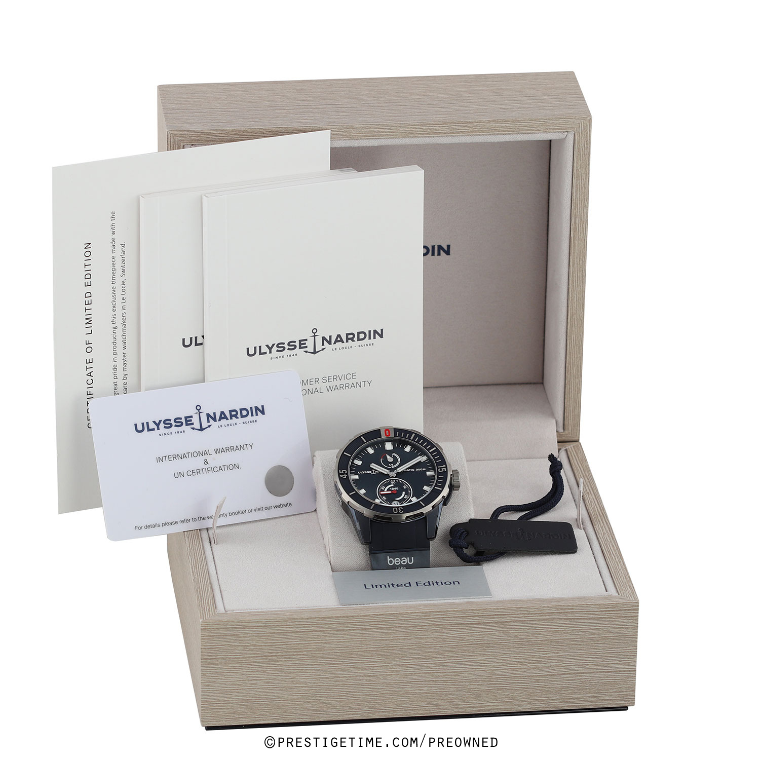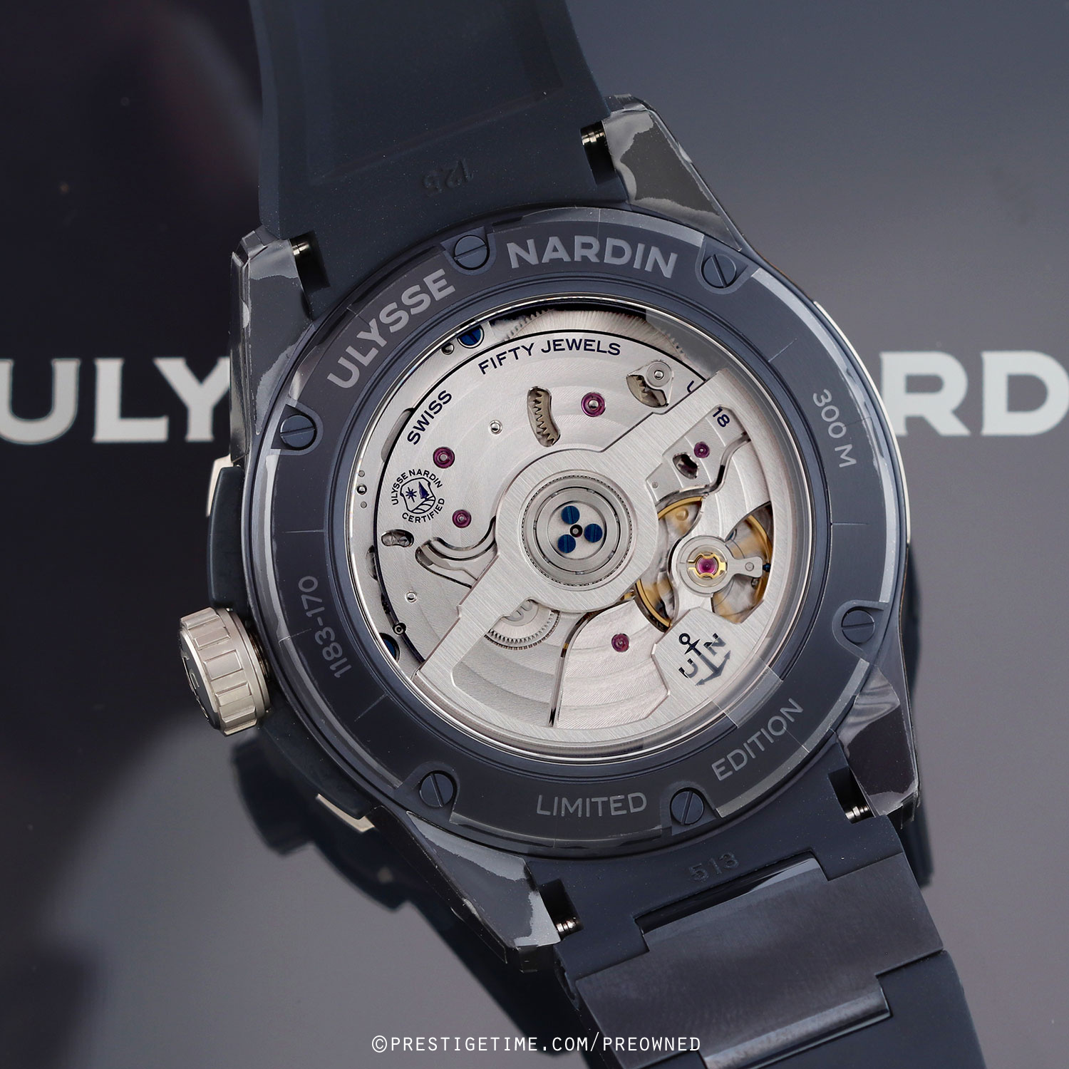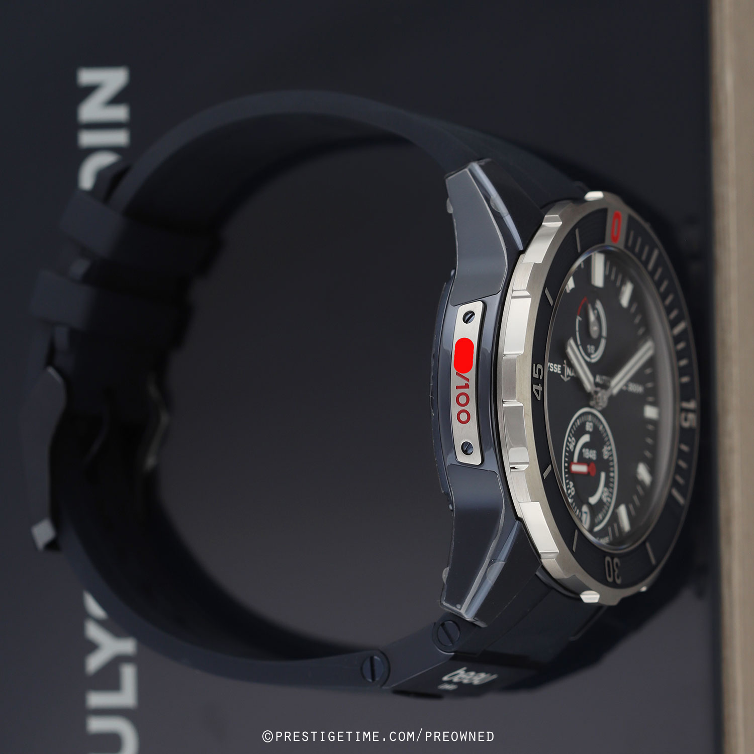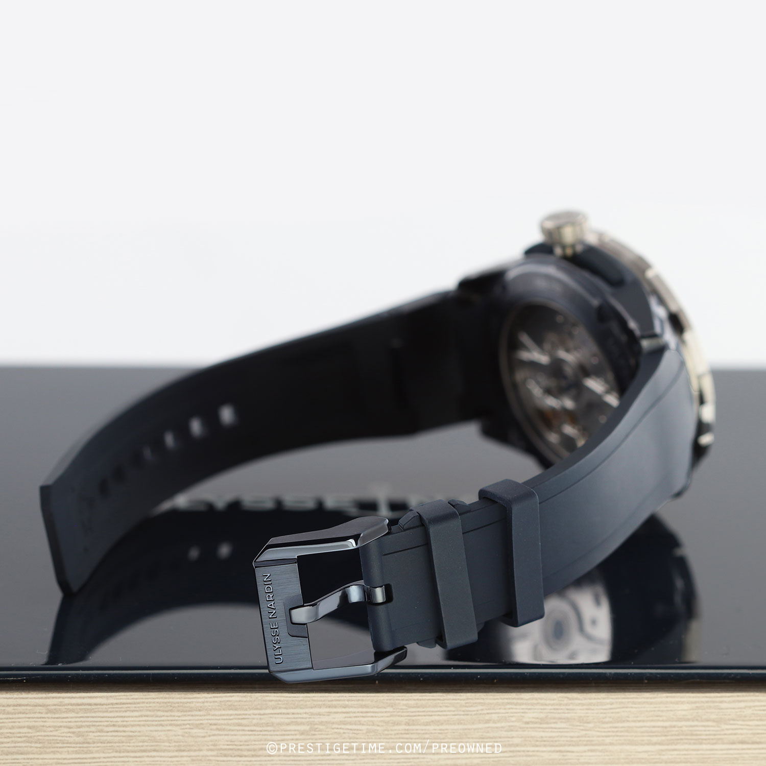 Strap: Fitted with it original Ulysse Nardin blue rubber strap with an integrated blue ceramic element & a blue PVD coated tang buckle. The strap is unworn, in brand new condition with its full wear lifespan remaining.