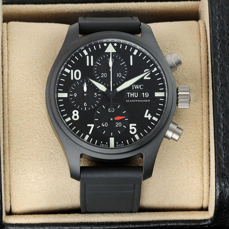 Case: Brushed & polished stainless steel case. Polished black ceramic bezel engraved with a 1/10th of a seconds seconds track. Black main dial. Tri-color (grey, light grey & blue) sub-dials. Polished hands, the hour & minute hands with luminous fill. Applied polished index hour markers with luminous filled tips. Fine printed minutes/seconds & fractions of a seconds track. Small seconds sub-dial at 9 o'clock. Date window between 4 & 5 o'clock.