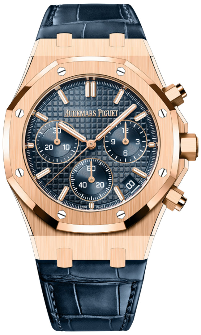 • Blue dial with AP's signature Grande Tapisserie design pattern. 'Bleu Nuit, Nuage 50" shade of the original model from 1972.
