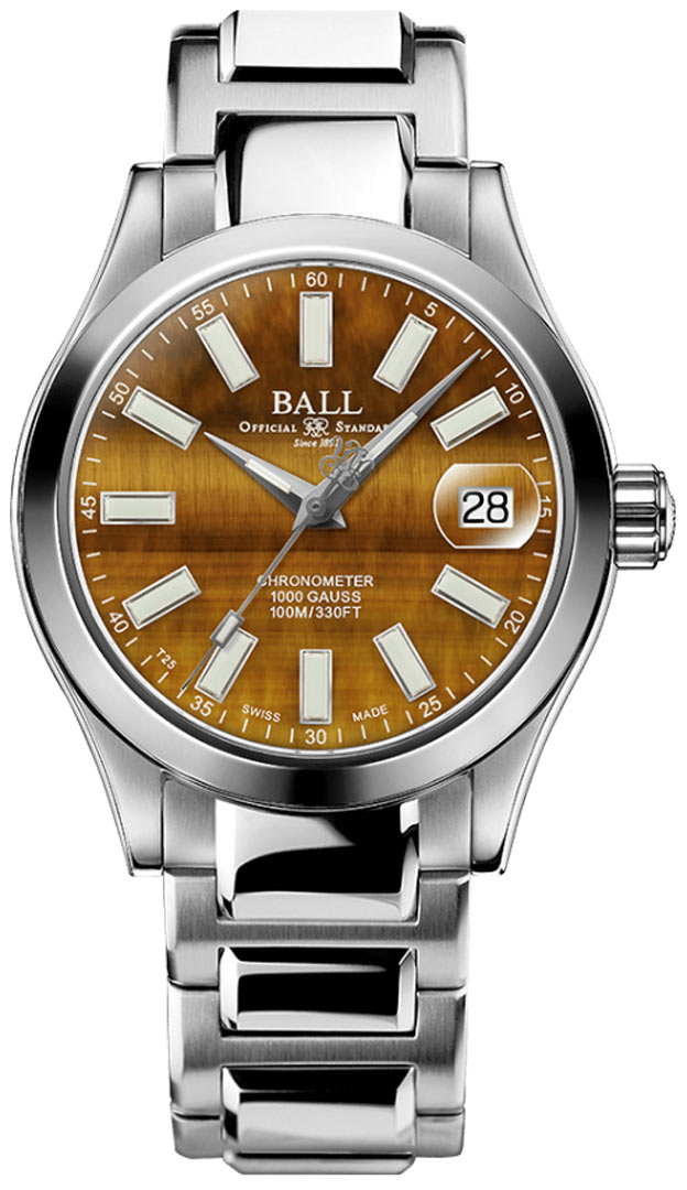Dial: brown - tigerite gemstone dial, has a natural reflective shimmering effect of golden-brown hues. 14 micro gas tubes on hour, minute and second hands and hour markers.