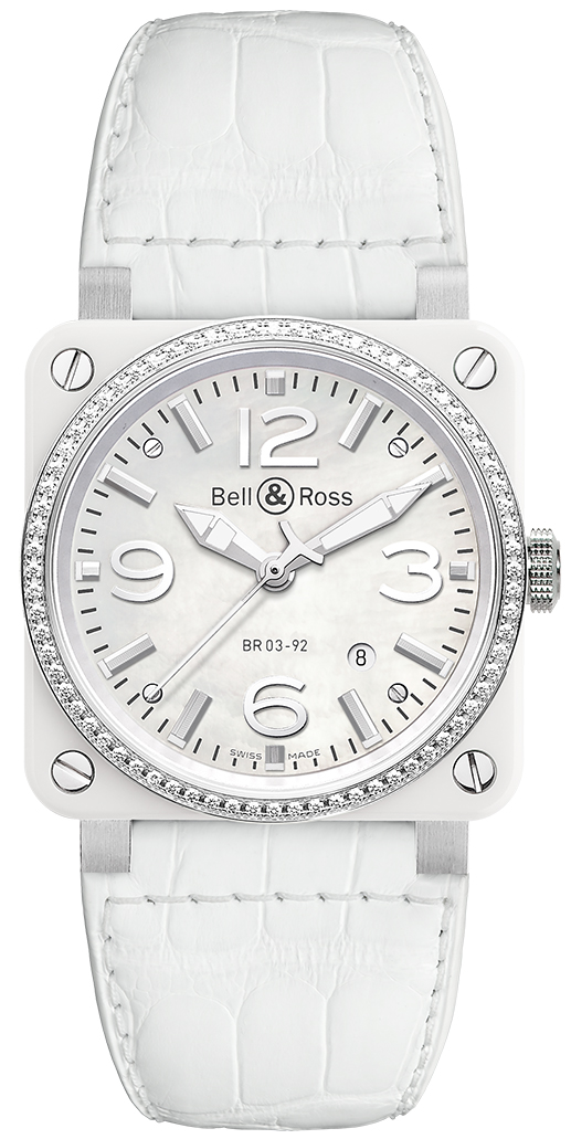 Mens Bell & Ross BR03-92 White Ceramic Diamonds Alligator BR03-92 Automatic 42mm Watch