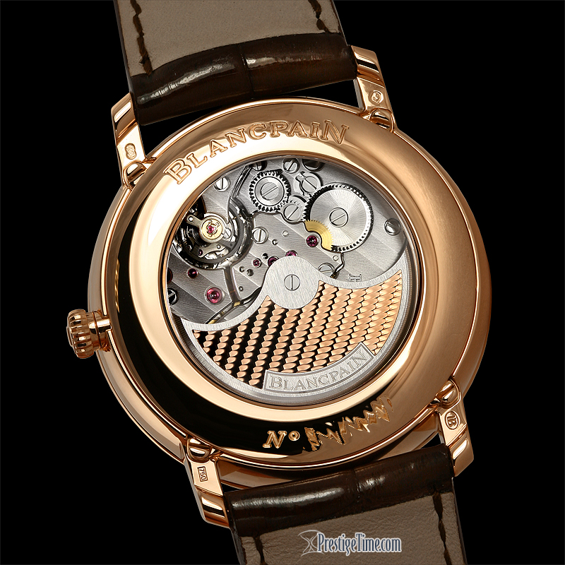 • Blancpain Caliber 6639, composed of 303 components, contains 36 jewels & has an impressive power reserve of 8 days (192 hours) - this is accomplished by a set of 3 barrels.