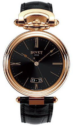 The over-sized bow around the crown at the 12 o'clock position is a distinct BOVET characteristic, reminiscent of the pocket watches from the 19th century. The proportions of the bow has been increased, from its original purpose as a chain attachment, to accommodate the width of a full sized strap & doubles as a crown protector.
