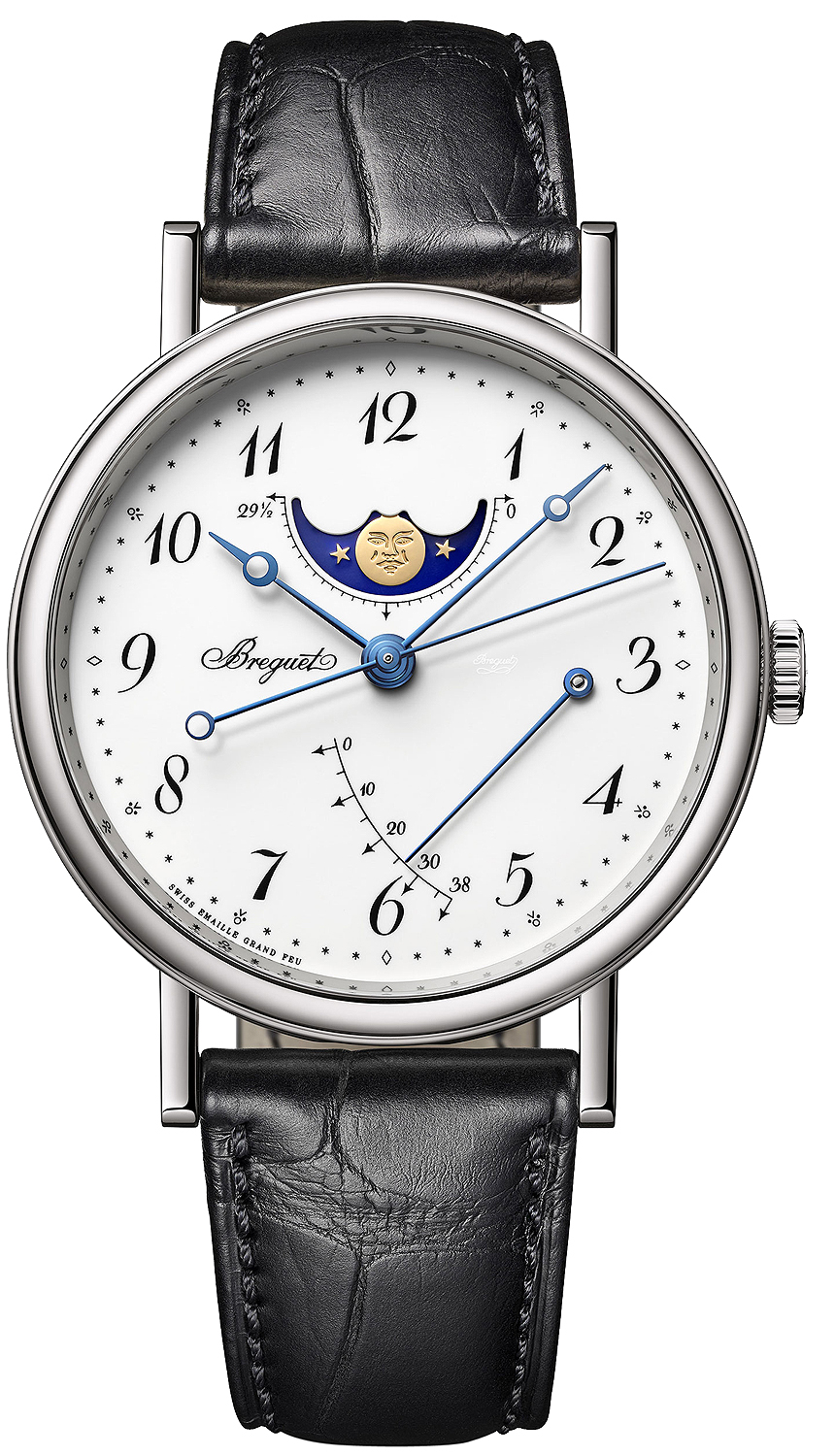 • White Grand Feu enamel dial.