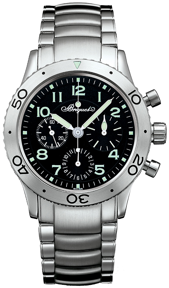 Polished stainless steel case, bezel & bracelet. Flyback Chronograph. NO DATE. Luminous Hands & Arabic Numeral Hour Markers. 48 Hour Power Reserve.