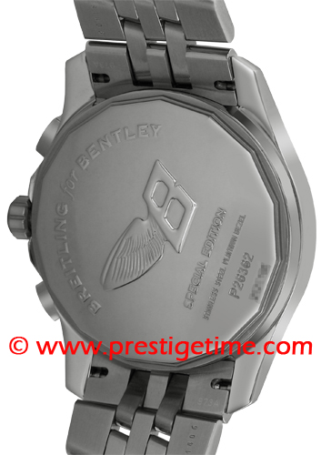 This distinctive model with it's criss-crossed engraved fixed (non rotating) Solid 950 Platinum Bezel is worthy of its affiliation with the Bentley name.