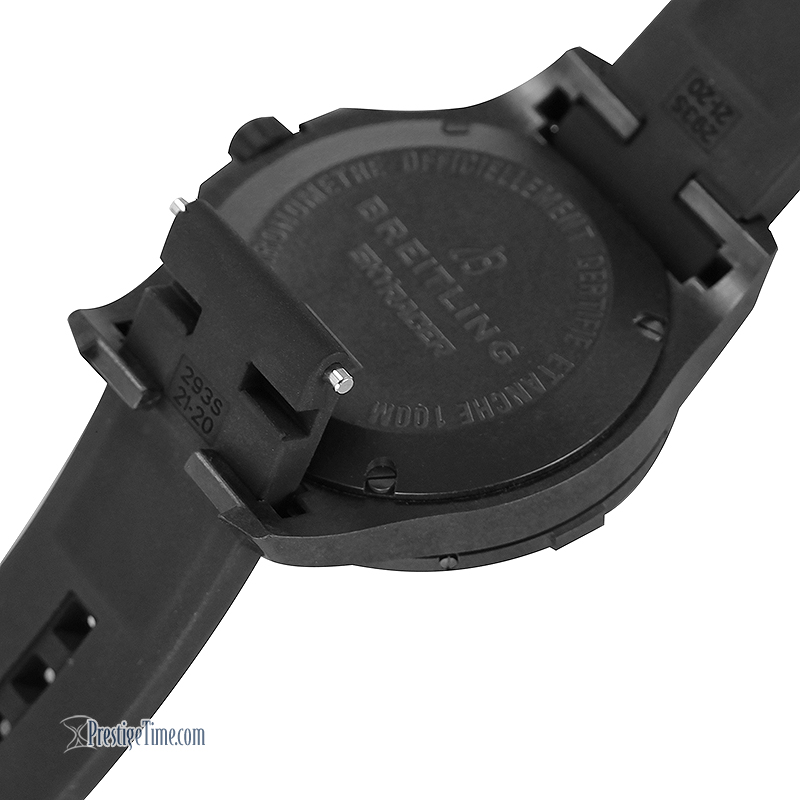 • Matte black case made from a Breitling proprietary lightweight, yet highly durable material named Breitlight: The Breitlight material utilizes a lightweight high-tech polymer that’s been charged with composite fibers for strength and rigidity, it is over three times lighter than titanium and nearly six times lighter than steel.