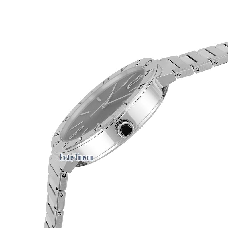 • Polished steel bezel engraved with the iconic BVLGARI•BVLGARI logo.