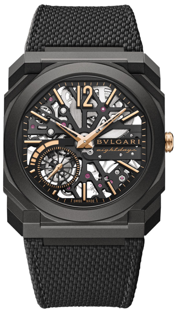 Calibre: Bulgari calibre BVL 199 SK, beats at 3Hz/21600 vph, 33 jewels, power reserve of 192 hours (8 days)