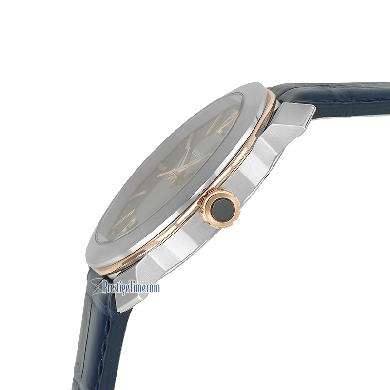 • Rose gold toned applied-by-hand hour markers with polished tapered edges in a combination of indexes & Arabic Numerals.