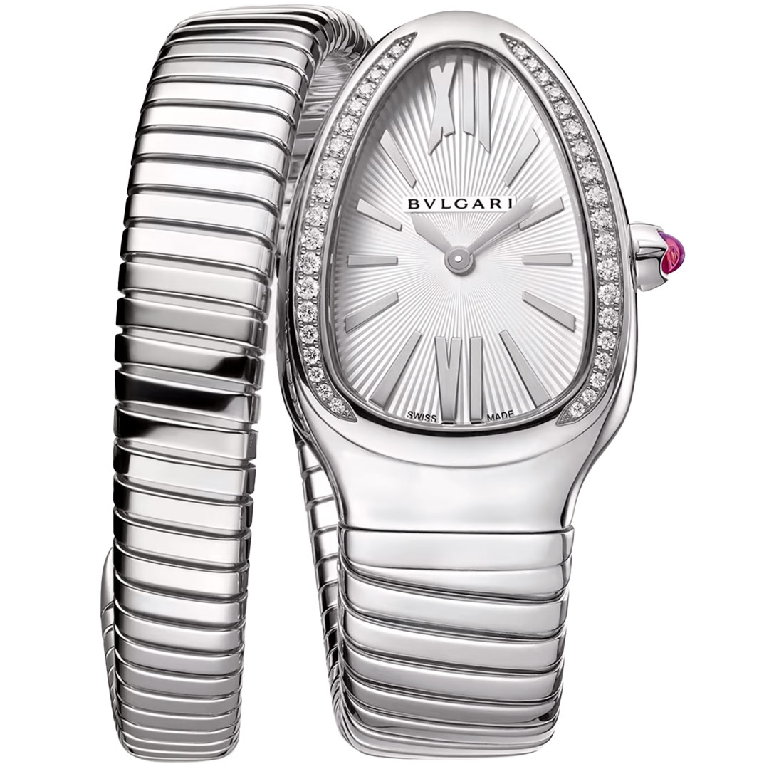 Constructed in the figure of a snake, the SERPENTI is one of BVLGARI's most famous icons. The head of the watch imitates the head of a snake & with the bracelet slowly tapering down imitating the body & tail of a snake. The bracelet is a comfortable wear due to the suppleness & flexibility of the bracelet.