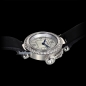• Polished 18kt white gold case with a satin strap.