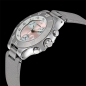 • Silvered sunburst dial with pink lacquer featuring sword-shaped luminescent hands.