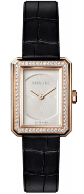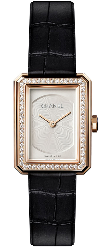 • Black alligator leather strap with gold buckle set with 49 diamonds.