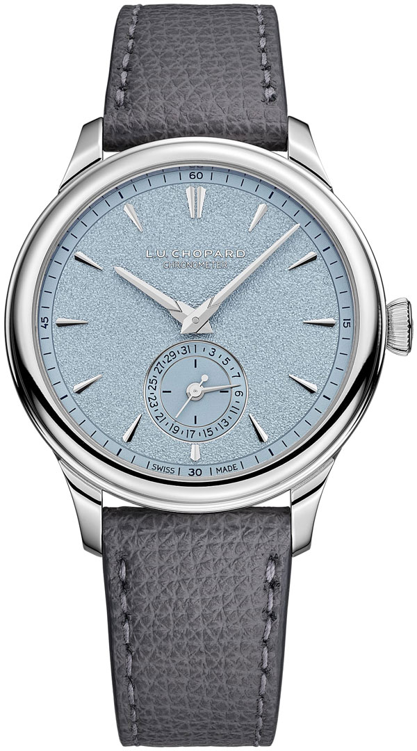 Calibre: Chopard calibre L.U.C 98.09-L, beats at 4Hz/28800 vph, 38 jewels, power reserve of 216 hours (9 days)
