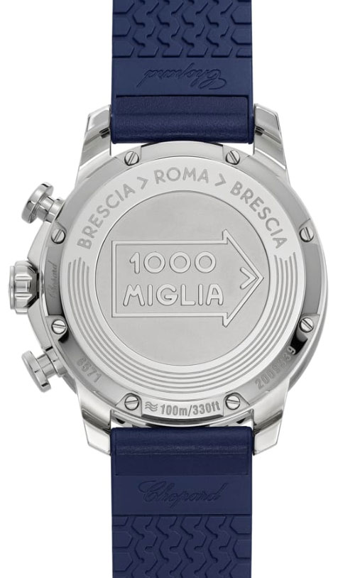• Solid steel case back with an embossed "1000 MIGLIA" logo.