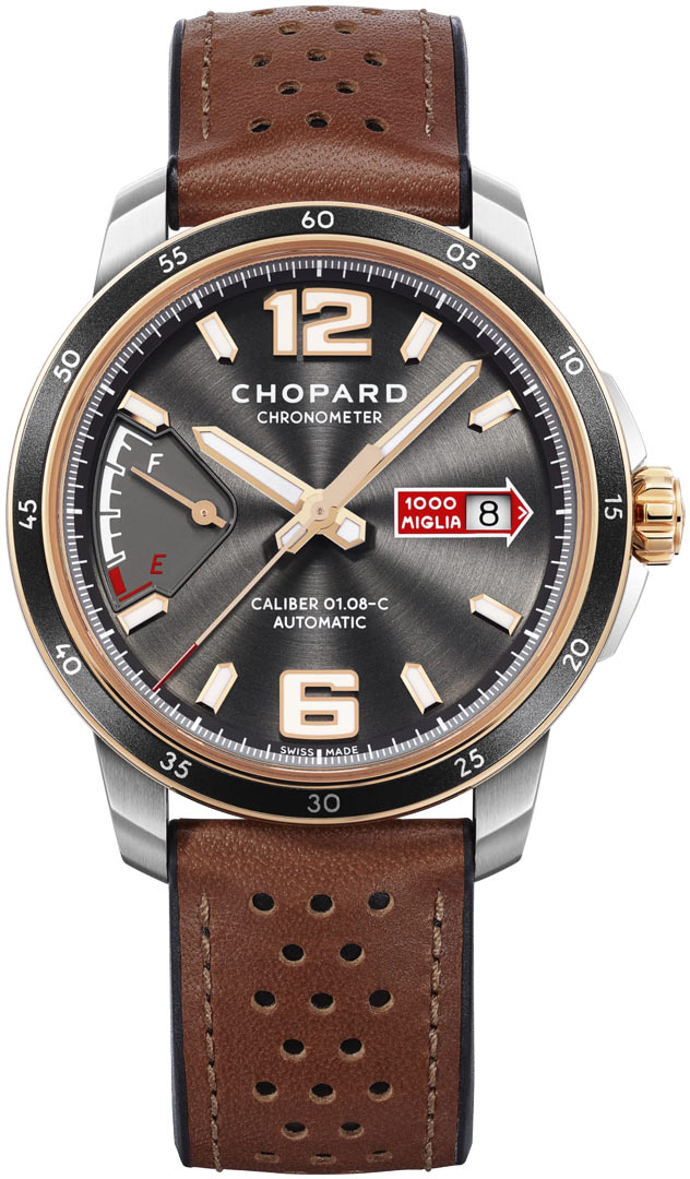 • Chopard in-house movement Caliber 01.08-C, beats at 28,800 vph, composed out of 251 parts, contains 40 Jewels & has an approximate power reserve of 60 hours.
