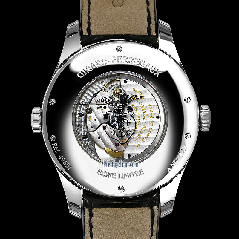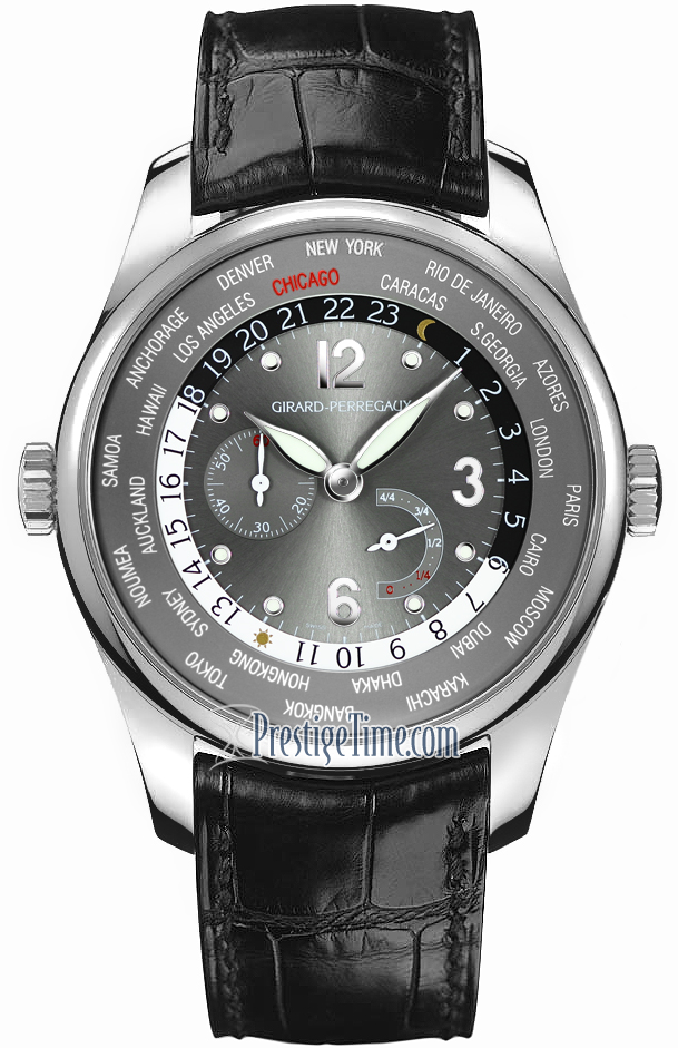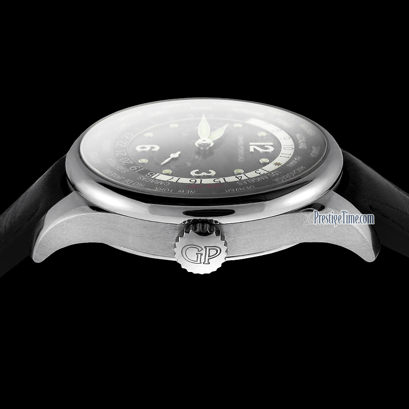 LIMITED & NUMBERED EDITION OF 25 PIECES WORLDWIDE! The CHICAGO edition features CHICAGO as the home-time printed in red on the world-timer ring. With the GP emblem/logo printed on the case back crystal & also engraved on the movement.