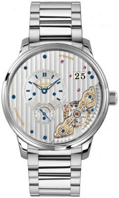 • This watch has no dial per-se, the 3/4 main-plate of the movement doubles as the dial allowing the viewer to enjoy the fine striped/ribbed finish, rubies & polished blued steel screw-heads that adorn this fine piece of horology.