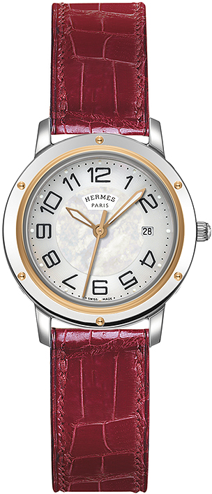 Ladies Hermes w039411WW00 Clipper Quartz MM 28mm Watch