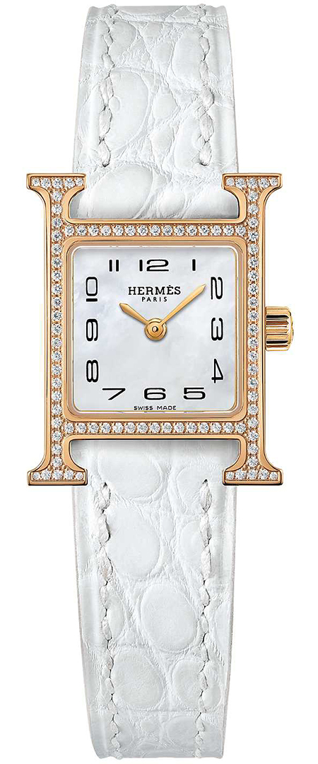 Ladies Hermes w053094ww00 H Hour Quartz 17.2mm Watch