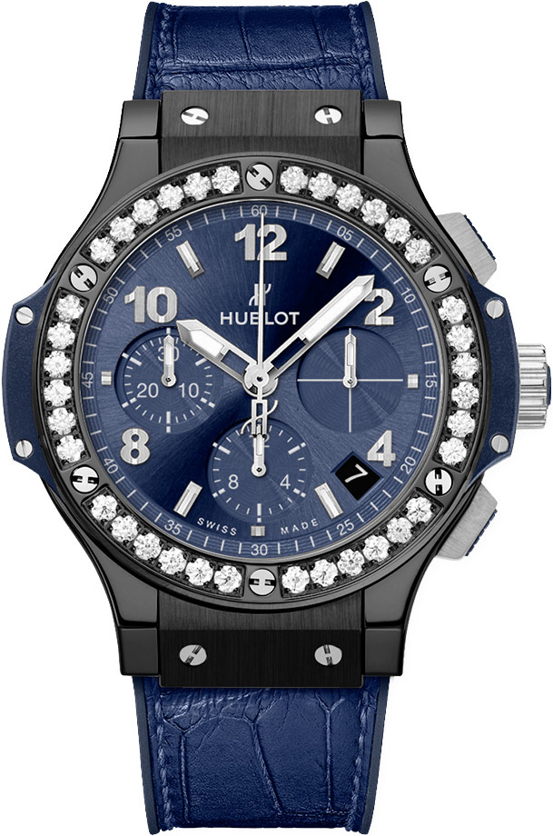 • Polished black ceramic bezel set with 36 diamonds (about 1.80 carats), secured by 6 polished "H" shaped titanium screws.