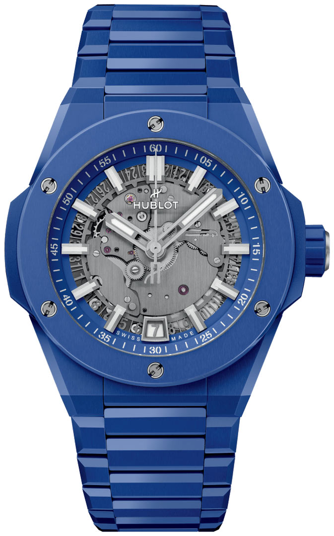 • Brushed & polished blue ceramic case.