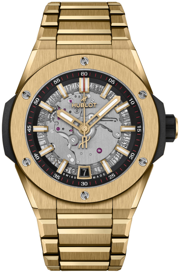 • Brushed & polished 18kt yellow gold bezel secured by 6 H style titanium screws.