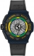 • Raised/tapered black inner bezel flange on the perimeter of the dial with yellow printed minute/seconds track, blue printed fractions of a second track.