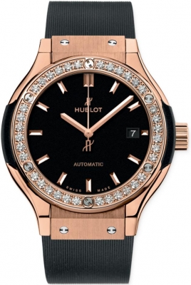 • Polished 18kt King Gold (rose gold) crown engraved with the Hublot logo.