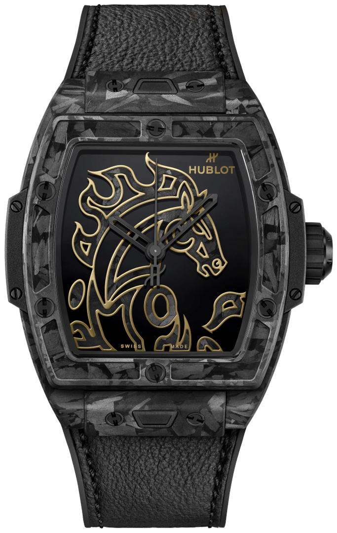 Dial: black - polished black dial with horse-shaped applique with frosted carbon