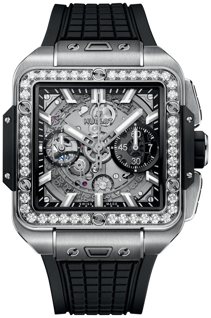 • Polished titanium bezel factory set with 44 diamonds, secured by 6 H-shaped titanium screws.
