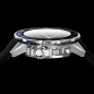 • Bold polished steel rimmed applied index hour markers filled with blue luminescent material.