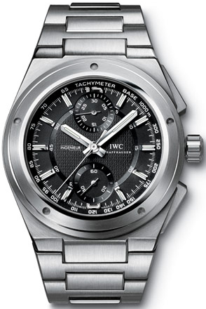Guilloche Black Textured Dial. Luminous hands & applied Index Hour Markers. Automatic Movement with Stop-Watch Functions. Power Reserve of Aporx. 44 hours. Soft Iron inner casing protects against magnetic fields. Patented IWC Bracelet Sysytem can be easily sized - no special tool or screwdrivers necessary.