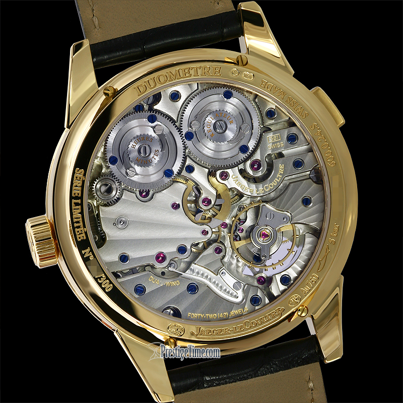• Jaeger LeCoultre Caliber 381, beats at 21,600 vph, composed out of 369 parts, contains 40 Jewels & has an approximate power reserve of 50 hours.
