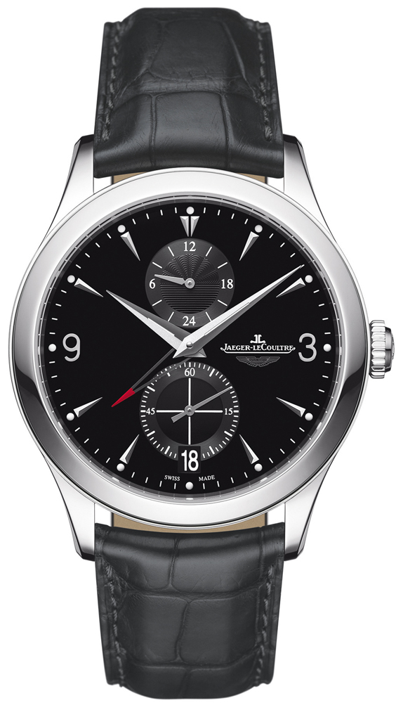 • This version features a red arrow head dual time-zone hand & the Aston Martin logo beneath the JLC logo.